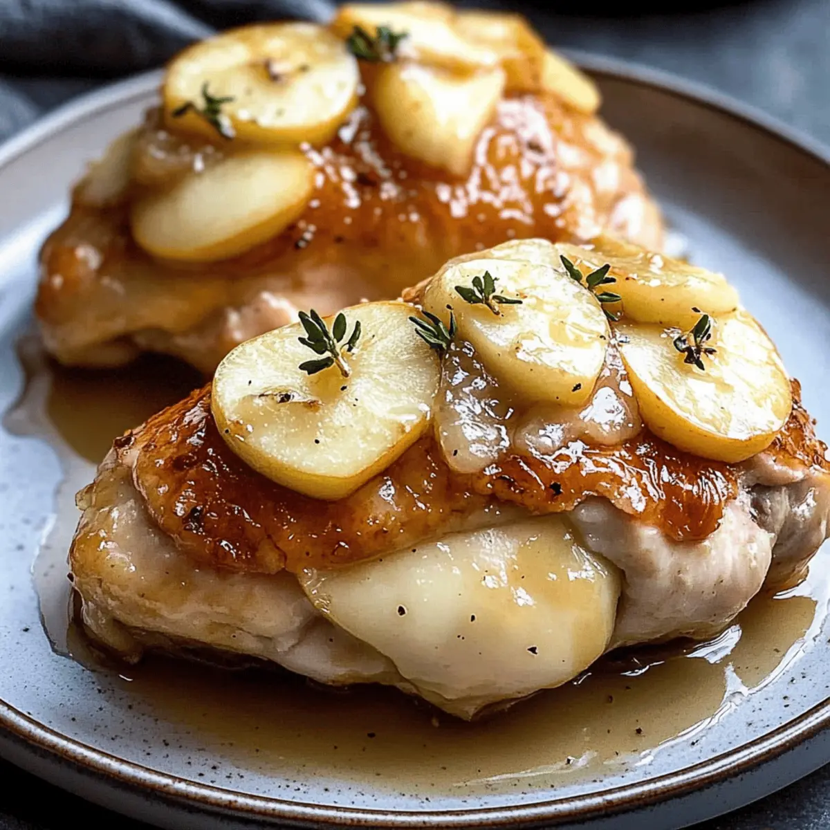 While the chicken is baking, prepare the maple-cider glaze in a small skillet over medium heat. Combine apple cider, pure maple syrup, minced garlic, and Dijon mustard. Simmer for about 12-15 minutes, stirring occasionally, until the mixture thickens and becomes syrupy. This glaze will add a delightful sweetness to your Apple Brie Stuffed Chicken.