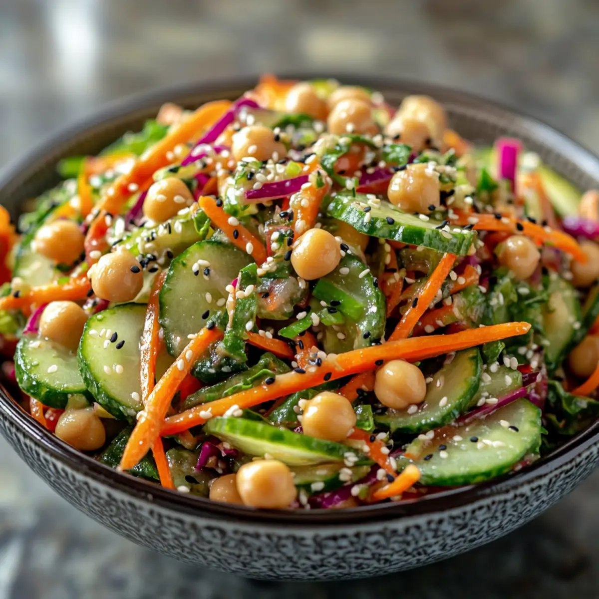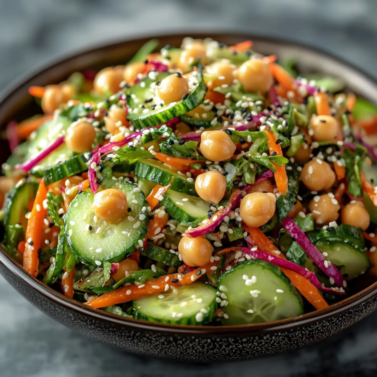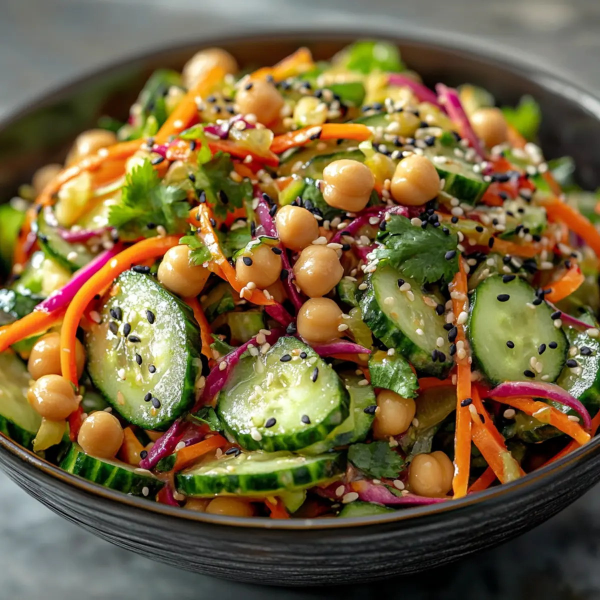 Crisp Asian Cucumber and Chickpea Slaw with Sesame Dressing