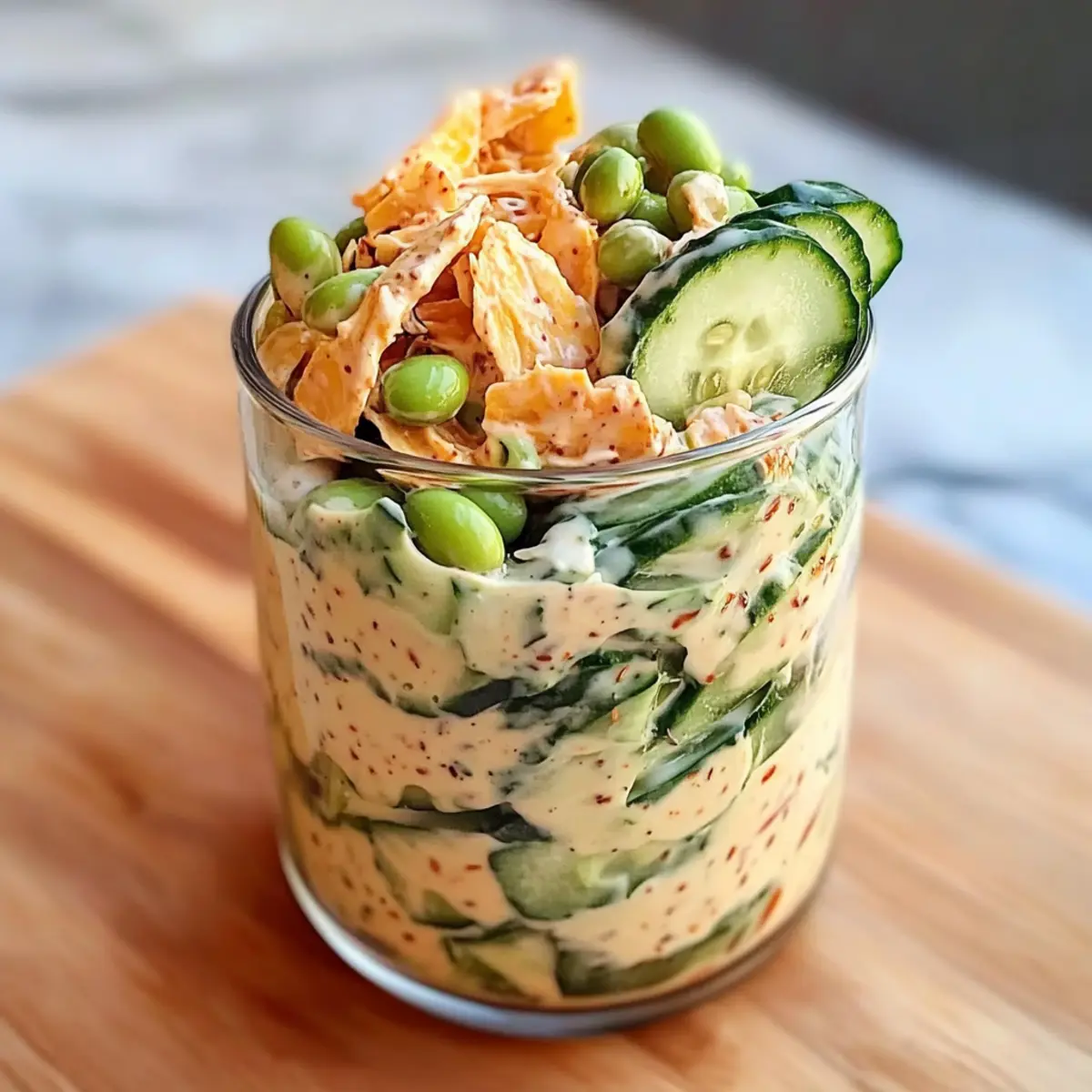 • Layering Order Counts: Ensure you layer the ingredients starting with cucumbers and finishing with dressing to maintain freshness and prevent sogginess.