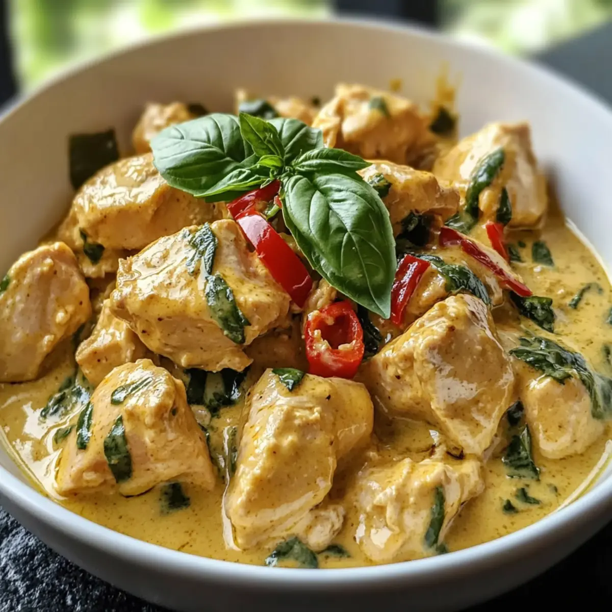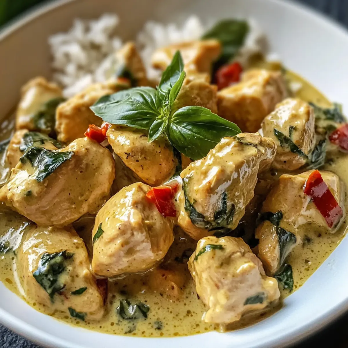 Rich, Comforting Flavor: The creamy coconut milk and fragrant basil create an irresistible sauce that envelops tender chicken pieces, ensuring each bite is packed with deliciousness.
