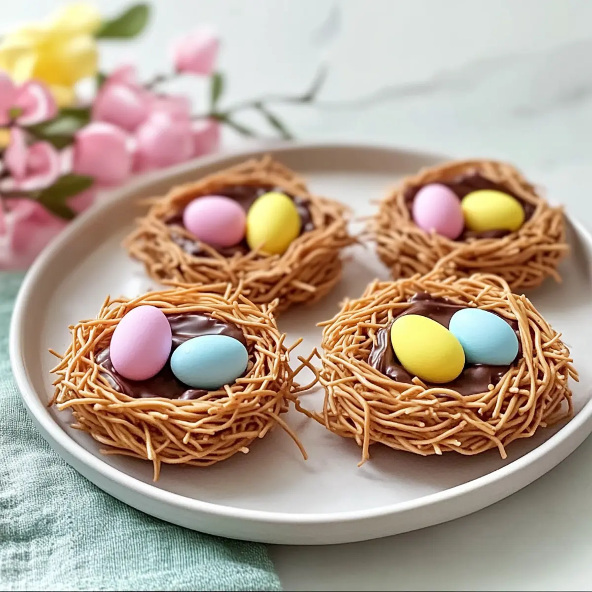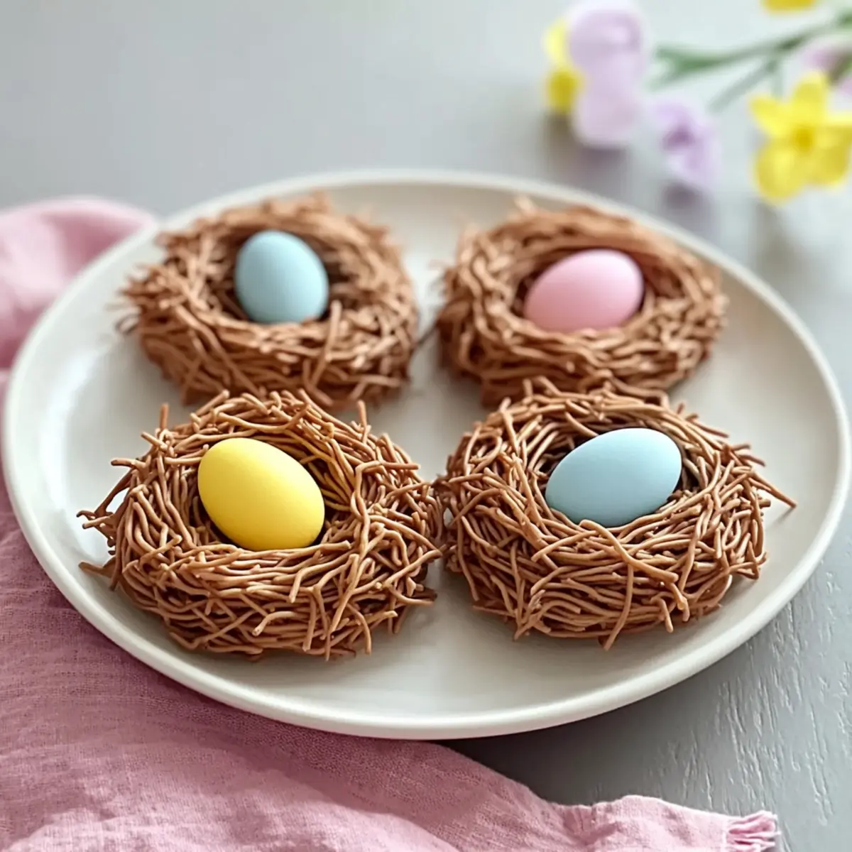 These Birds Nest Cookies are perfect for busy home cooks looking to save time! You can prepare the chocolate mixture and coat the chow mein noodles up to 24 hours in advance, simply refrigerate the mixture in an airtight container. When you’re ready to finish, scoop the chocolate noodle mixture onto a parchment-lined baking sheet, create your nests, and press in the pastel candy eggs. Allow them to set at room temperature for 30 minutes, or refrigerate for 10 minutes for quicker results. This advance prep keeps the cookies just as delightful and fresh for your gathering, allowing you to enjoy more time with your loved ones!