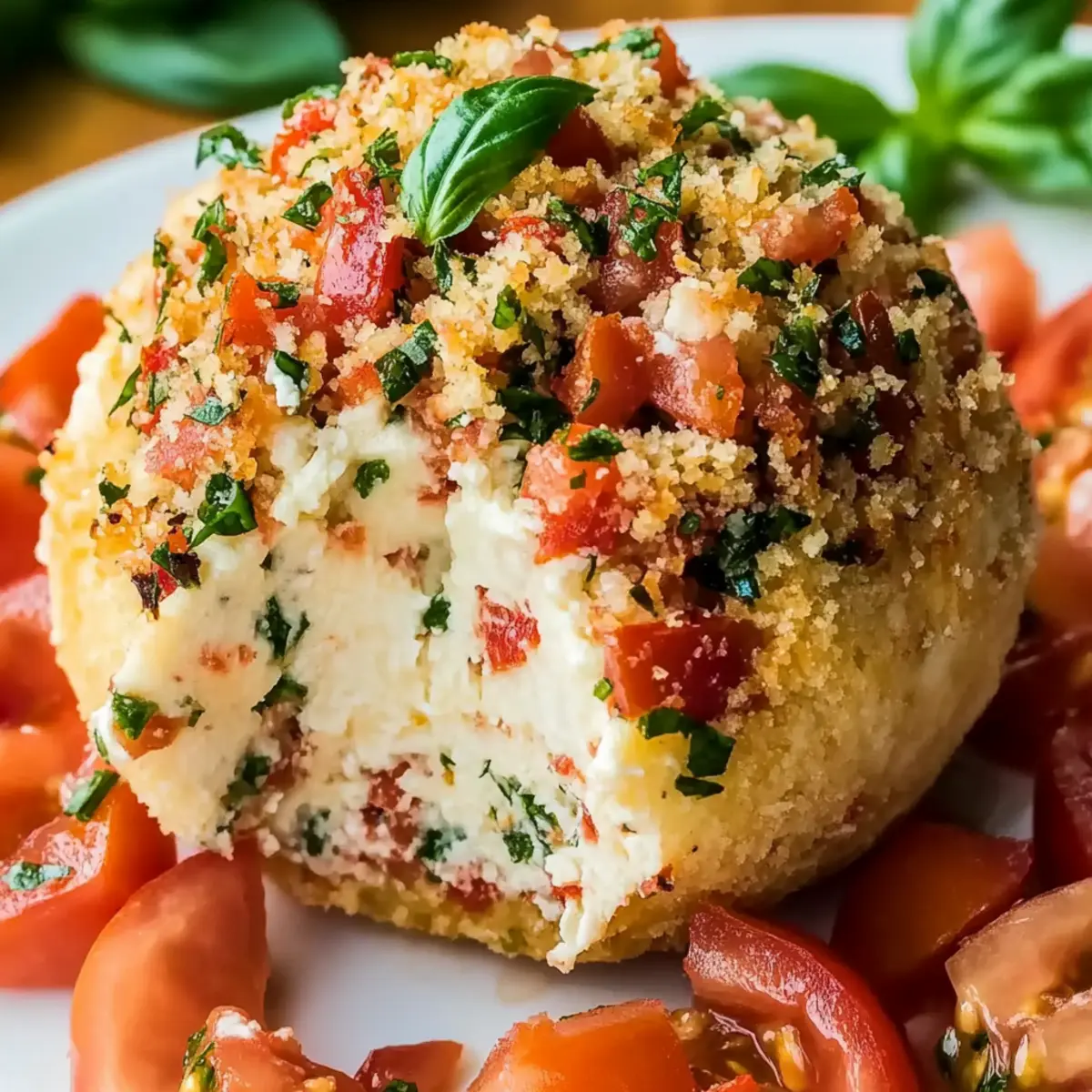 Your delightful Bruschetta Cheese Ball is now ready to be savored! Each bite delivers a rich, creamy flavor combined with the crunchy panko coating, making it an irresistible treat for you and your guests to enjoy at any festive occasion.