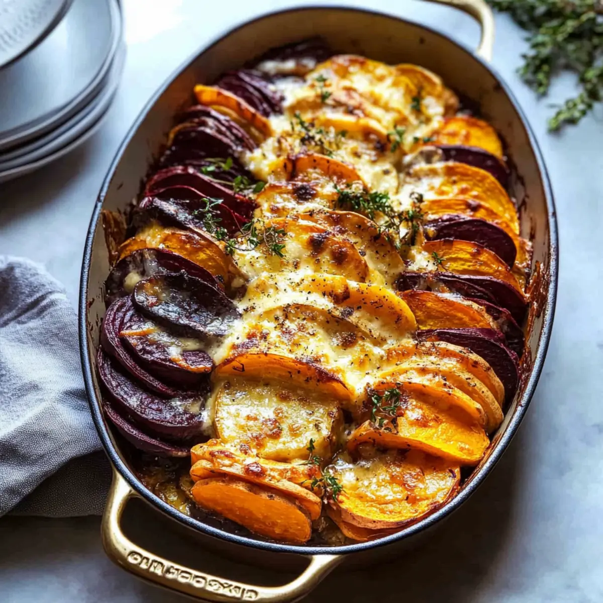 Comforting Flavors: This dish harmoniously blends sweet potatoes, parsnips, and beets, creating a deliciously cozy experience. Effortless Preparation: With simple steps, you’ll have an impressive side ready for your holiday feast without breaking a sweat. Visual Appeal: The vibrant layers make it not just a meal but a stunning centerpiece for any table. Versatility: Pair it with a hearty roast or a crisp green salad; it fits right in with any meal. Crowd-Pleasing Delight: Everyone will love the irresistible combination of creamy cheese and earthy vegetables—it’s sure to steal the show at Thanksgiving dinner. If you’re also interested in comforting yet delicious sides, check out our Cheesy Garlic Potato or Potato Casserole Cheesy recipes!
