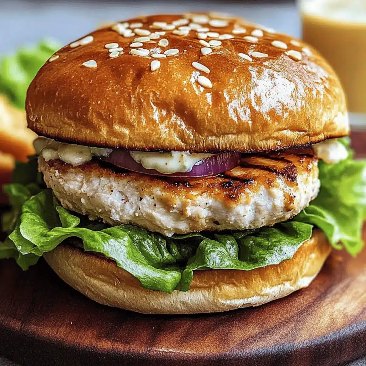 After grilling, let the patties rest for about 5 minutes; this allows the juices to redistribute, keeping each Chicken Caesar Burger moist. While resting, toast your hamburger buns on the grill for added texture. Assemble the burgers on the buns with fresh romaine lettuce, a drizzle of creamy Caesar dressing, shaved parmesan, and crunchy croutons for the ultimate flavor experience.