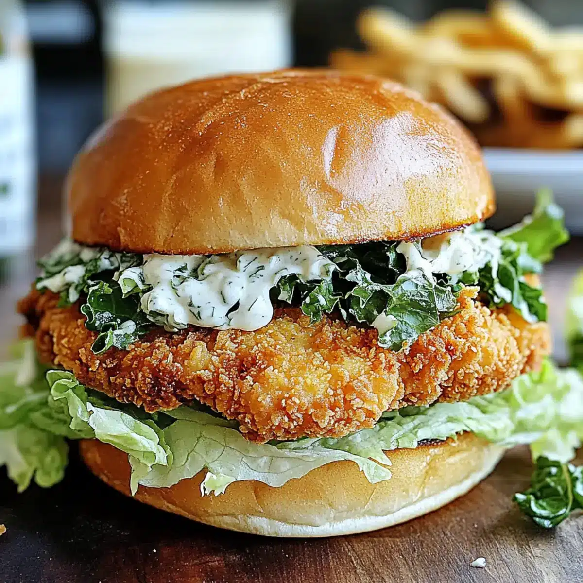 To avoid soggy bread, first, ensure that your chicken is thoroughly cooked and crisp before assembling the sandwich. Also, spread a thin layer of dressing on your buns just before adding other ingredients. If you want an extra layer of protection, consider placing a leaf of romaine lettuce directly on the bun before adding the chicken to keep moisture at bay.