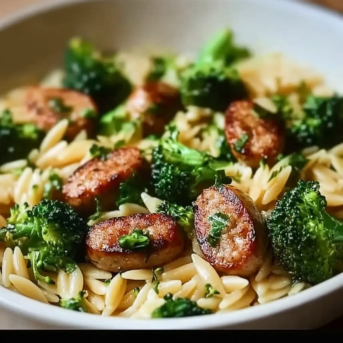 Savor Every Bite of Chicken Sausage and Broccoli Orzo