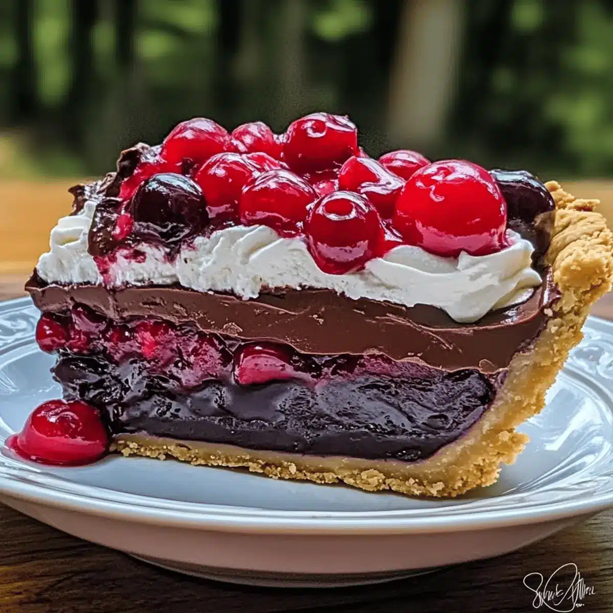 Savor the delightful fusion of chocolate and cherries in this Chocolate Cherry Cream Pie, perfect for any celebration.