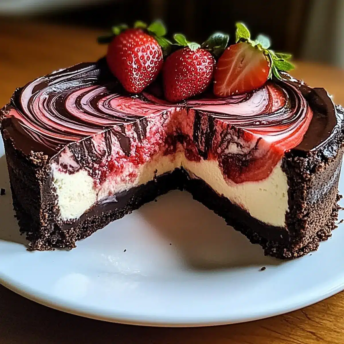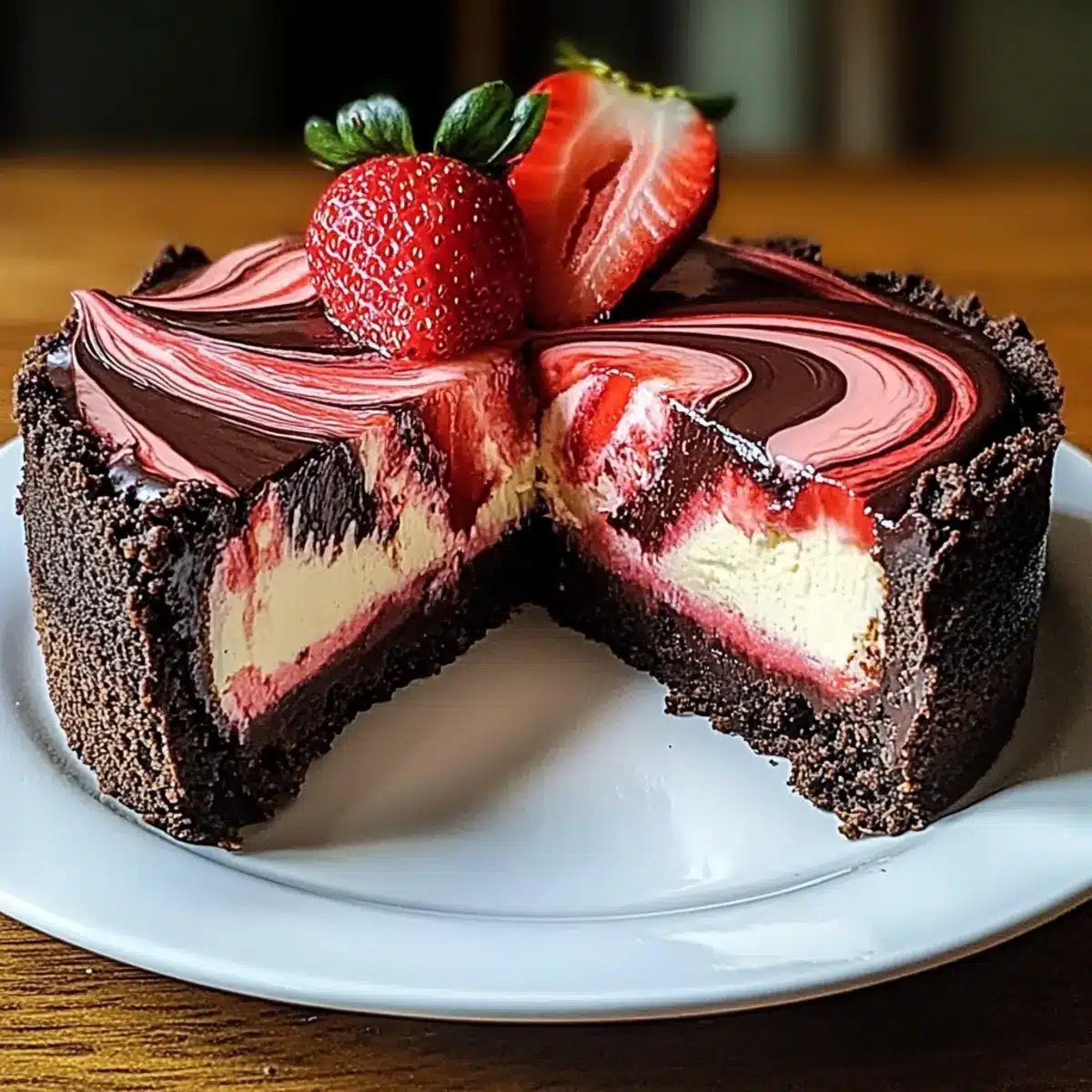 Chocolate Strawberry Swirl Cheesecake