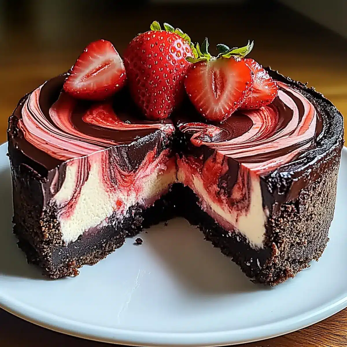 As I stood in my kitchen one sunny afternoon, I caught a glimpse of a juicy strawberry peeking out from my fruit bowl, sparking a sweet idea. The fusion of rich chocolate and fresh strawberries was calling out to be transformed into a luxurious dessert. Enter the Chocolate Strawberry Swirl Cheesecake, a delightful treat that brings joy to any gathering. Not only does this show-stopping cake feature an irresistible marbled design, but it’s also a crowd-pleaser with its creamy texture and fresh fruit twist. Whether it’s a special occasion or simply a weekend indulgence, this cheesecake is sure to impress everyone at the table. Ready to elevate your dessert game and impress your loved ones? Let’s dive in!