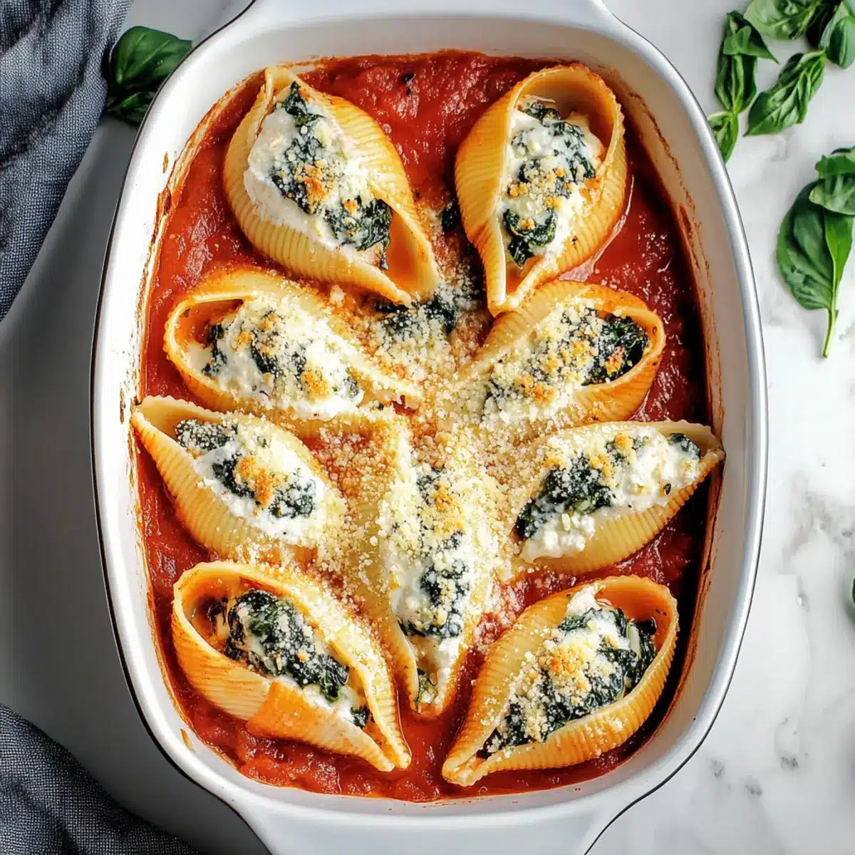 Great question! It’s essential to cook the pasta shells until they are al dente, typically around 10 minutes in boiling salted water. This way, they hold their shape when stuffed. If you accidentally overcook them, don’t despair; just handle them gently while stuffing, and consider using a spoon to help keep the filling in place as they bake!