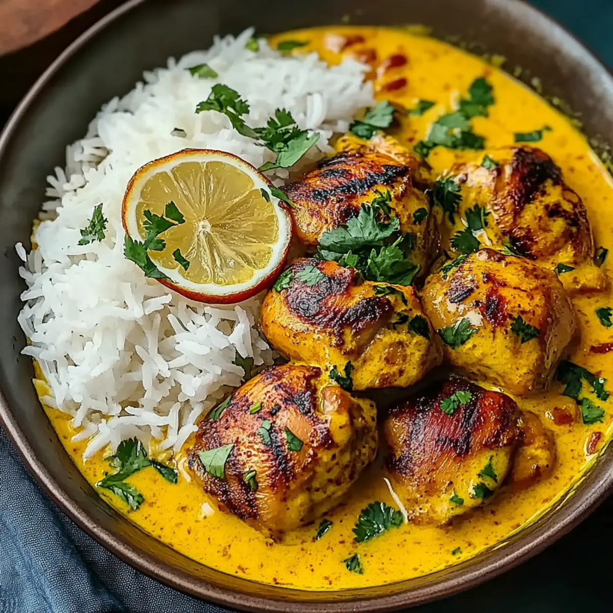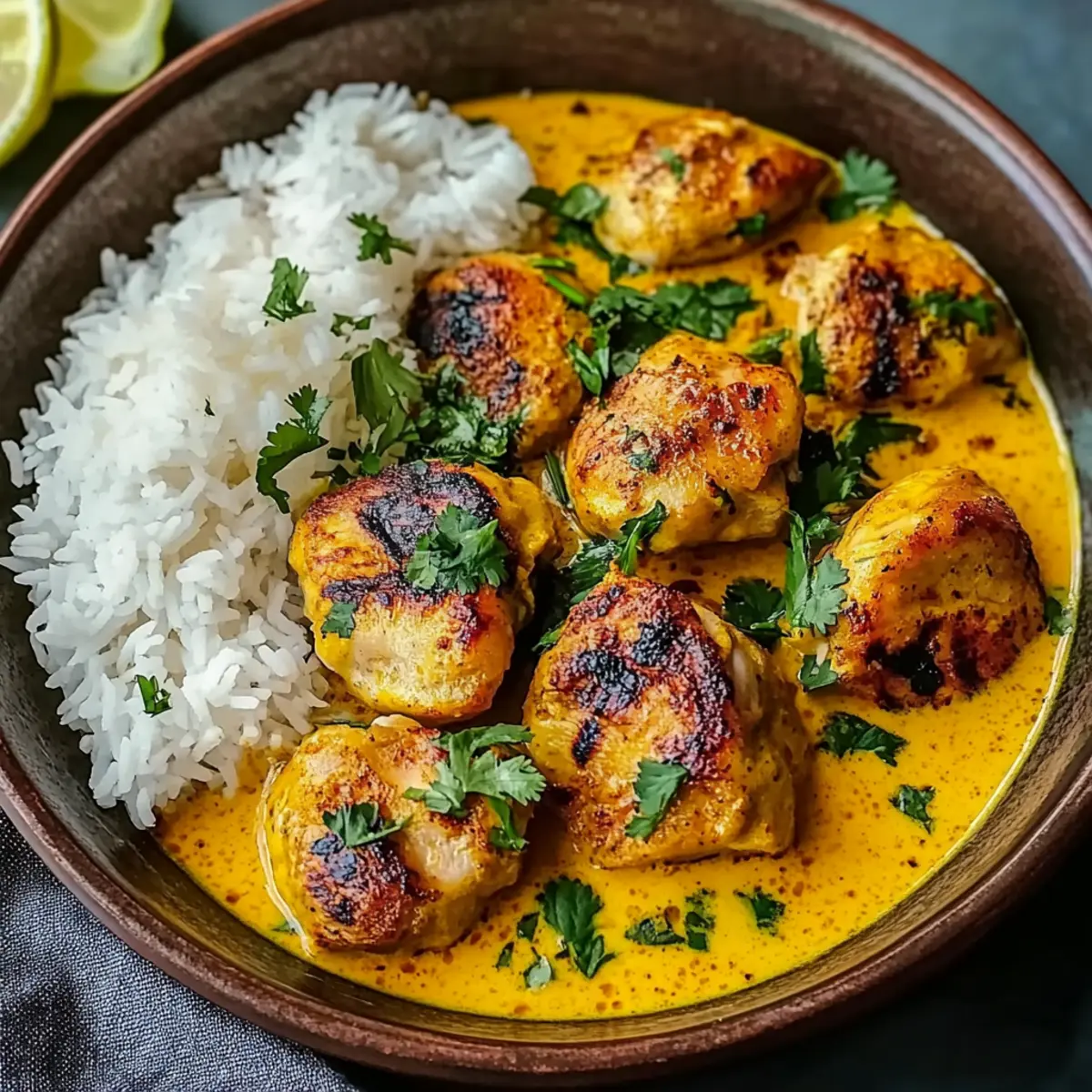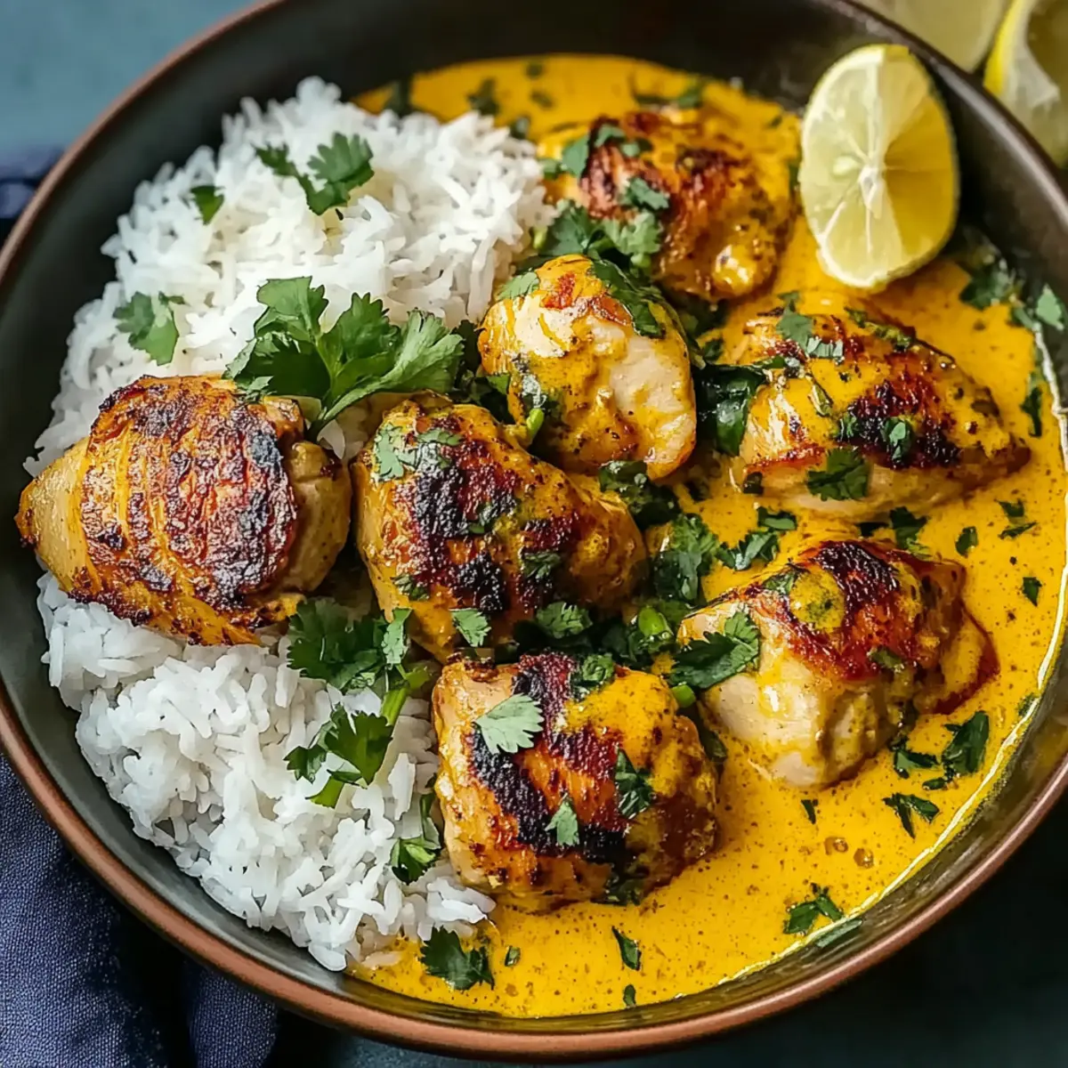Cilantro Lime Rice: A fragrant twist on classic rice, it adds a zesty brightness that complements the creamy warmth of Churu Chicken Amarillo beautifully.