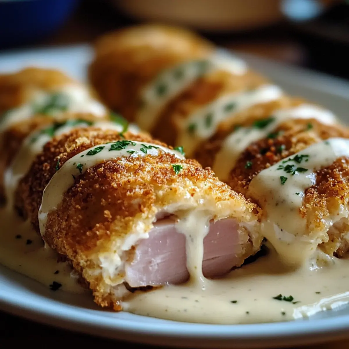 These Creamy Chicken Cordon Bleu Rolls are ideal for meal prep, making busy weeknights a breeze! You can assemble the rolls up to 24 hours in advance; simply fill, roll, and coat them as directed, then cover tightly with plastic wrap and refrigerate. For best quality, prepare the creamy Parmesan sauce just before serving to ensure its freshness and richness. When you’re ready to enjoy this delicious dish, sear the rolls and then bake them directly from the fridge—there’s no need to let them sit out. This way, you can have a gourmet meal with minimal effort, retaining all those irresistible flavors!