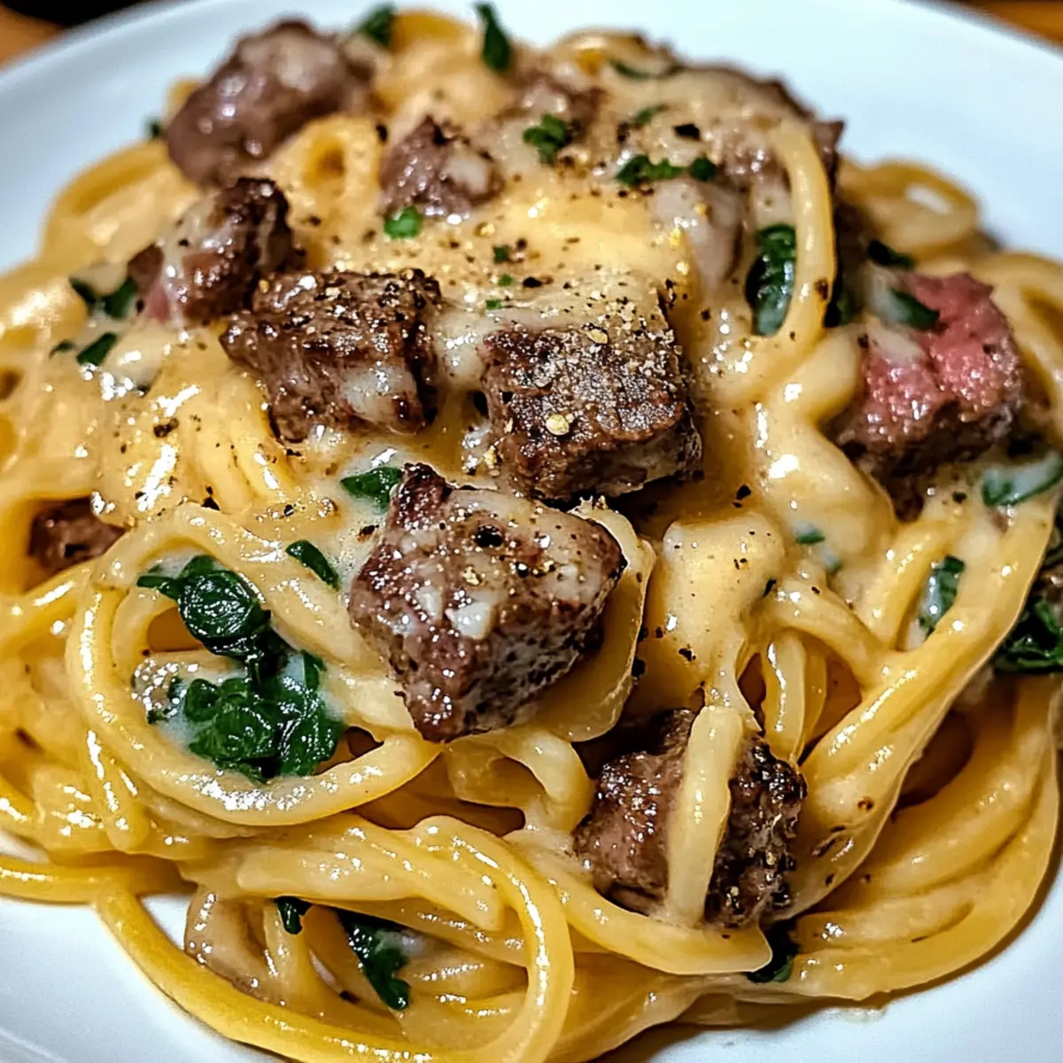 Creamy Cowboy Butter Linguine with Steak Bites & Spinach Bliss