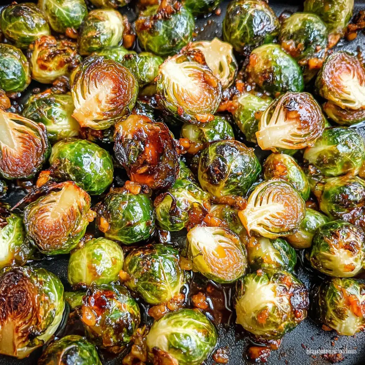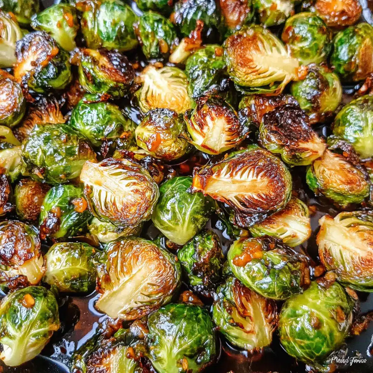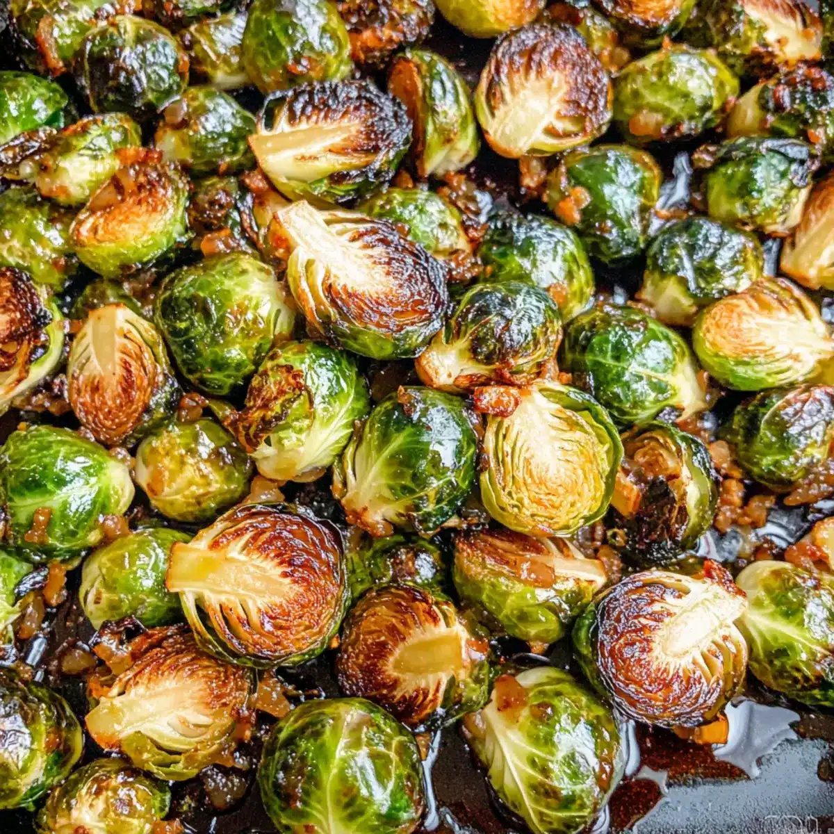 - Drizzle the glaze over the roasted Brussels sprouts and serve hot.