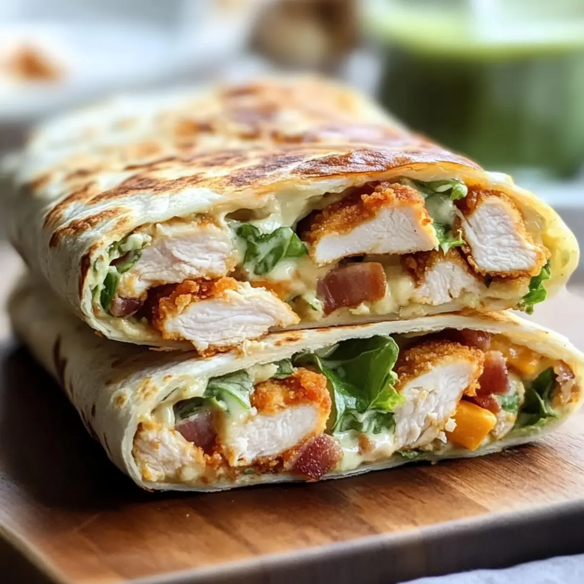 After toasting, remove the wraps from the skillet and let them cool slightly. Slice each wrap diagonally to showcase the vibrant filling and serve warm with additional ranch dressing or dipping sauce on the side. This final touch not only looks appealing but makes your Crispy Chicken Bacon Ranch Wrap even more enjoyable!