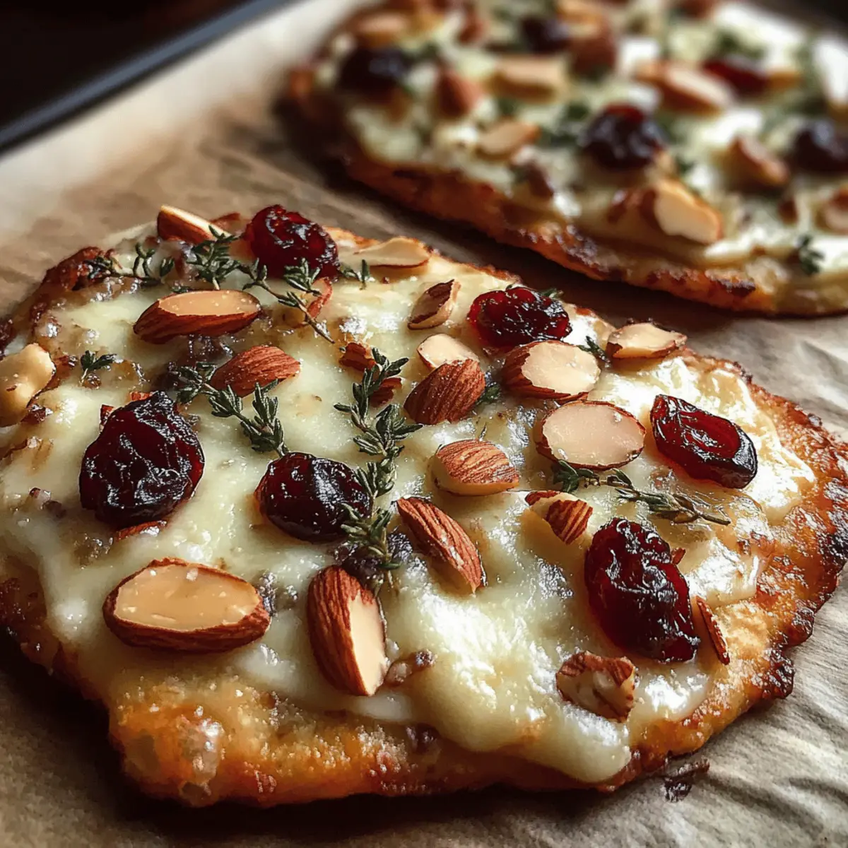 Crispy Flatbread with Brie, Cranberries & Almonds Bliss