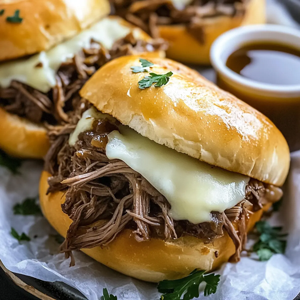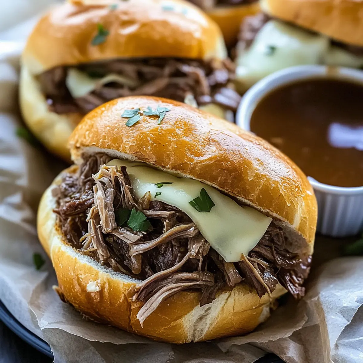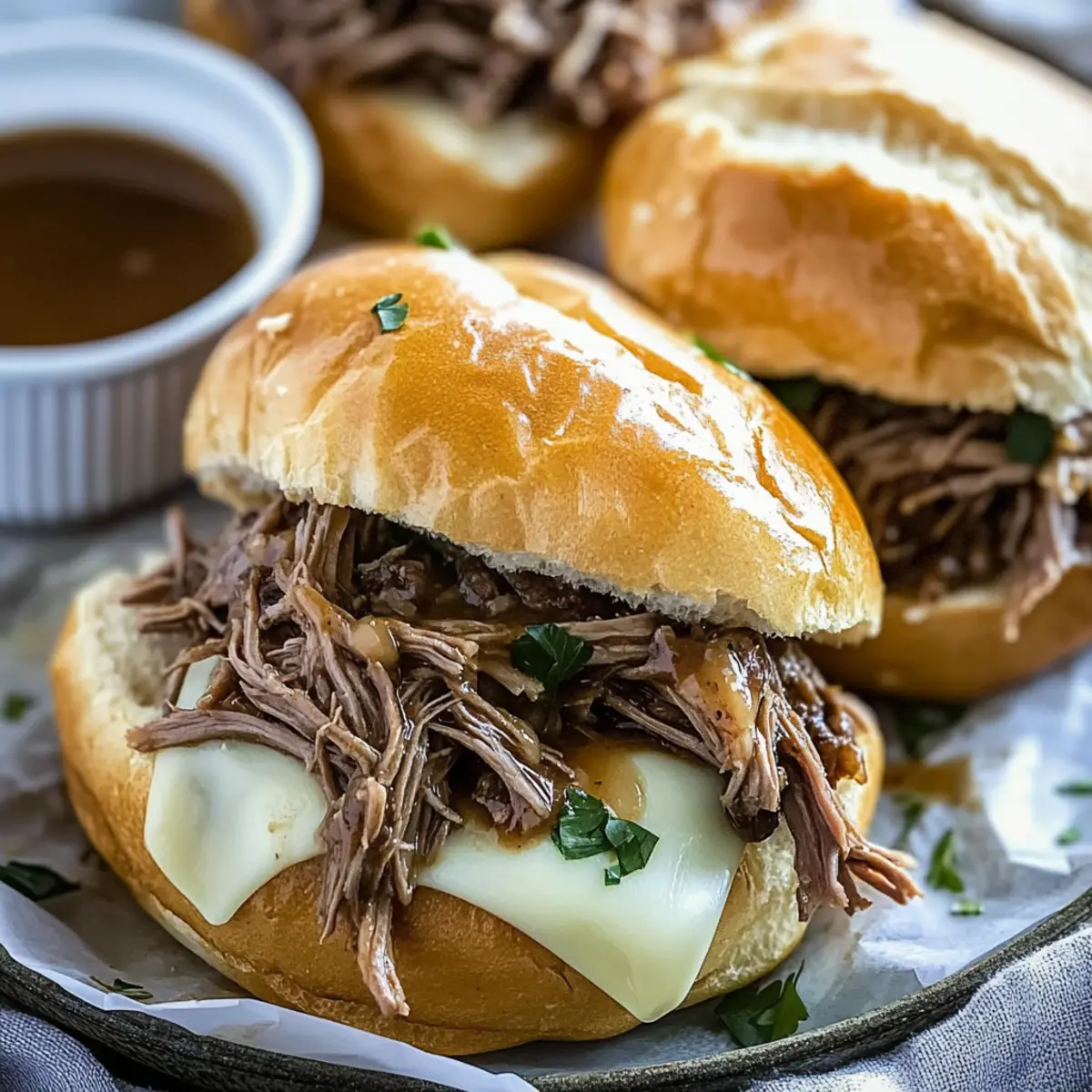 Store Wisely: If you have leftovers after a delightful dinner, keep the shredded beef in an airtight container submerged in au jus for up to 3 days; it helps maintain moisture.