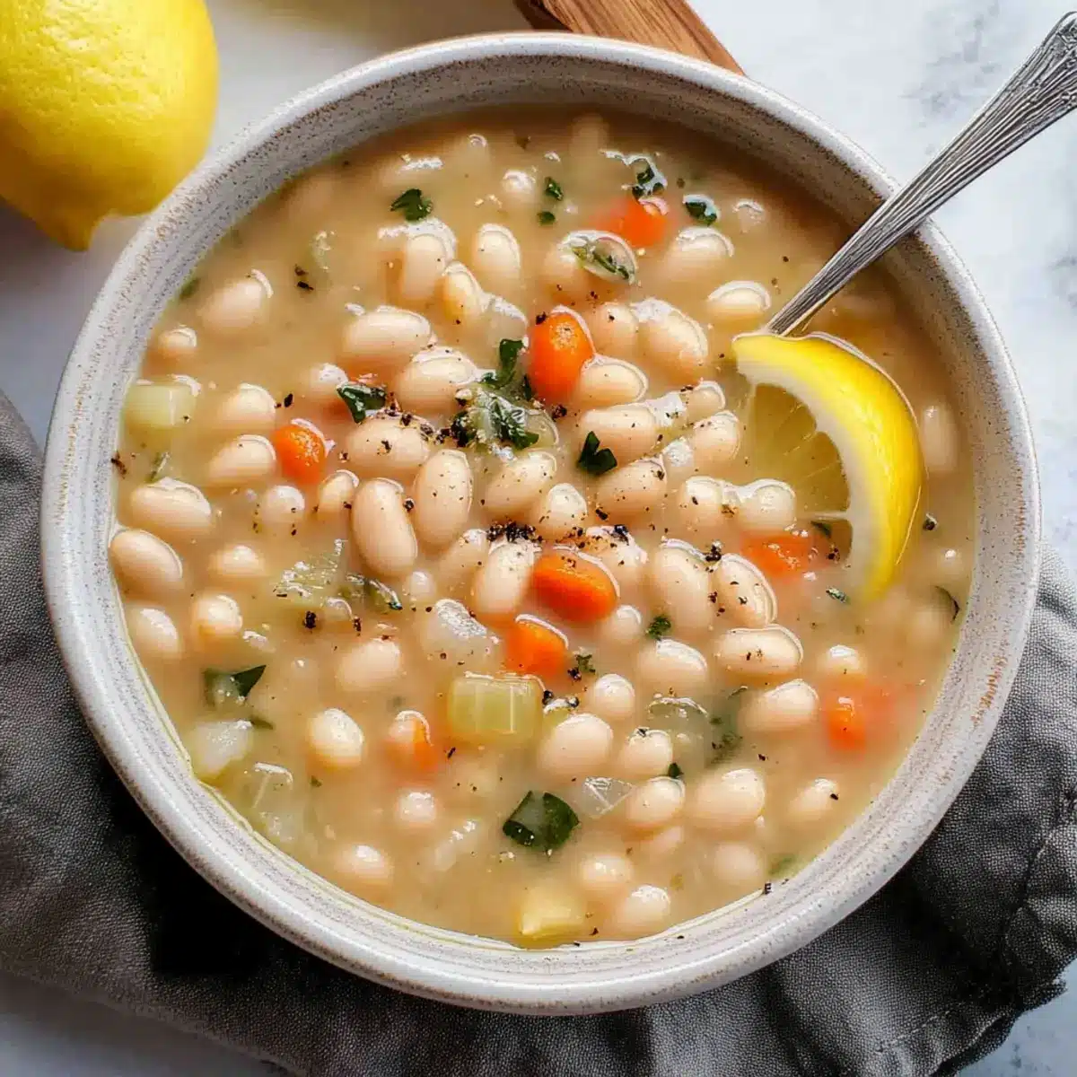 Just before serving, stir in the zest and juice from one fresh lemon. Allow the soup to cook for an additional 2 minutes to let the vibrant lemon flavor infuse the dish. This brightens the soup and adds a refreshing contrast to the hearty beans.