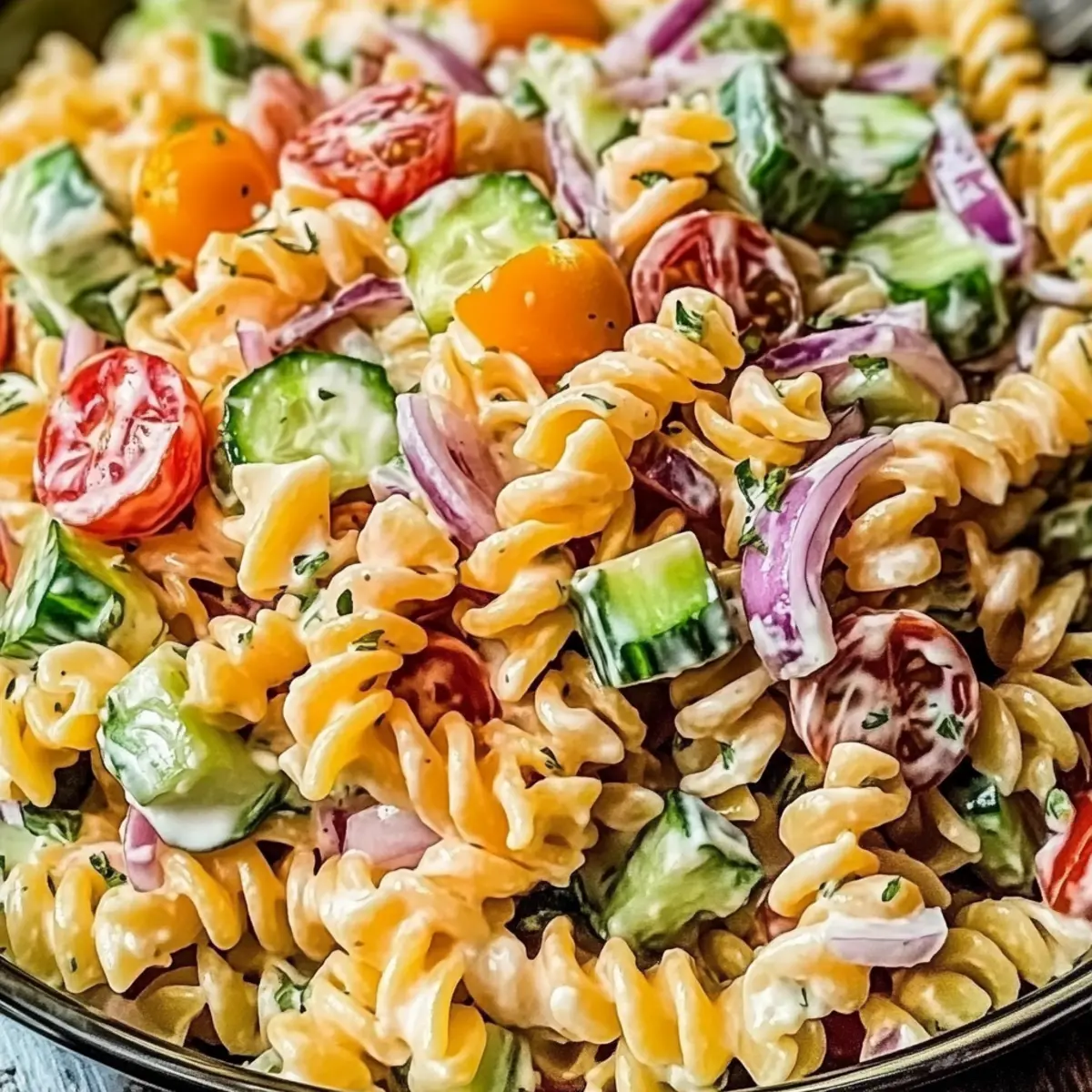 Reheating: If you prefer your meal warm, gently reheat the pasta (without the salad components) and then toss it with fresh veggies and dressing right before serving for optimal flavor and crunch.