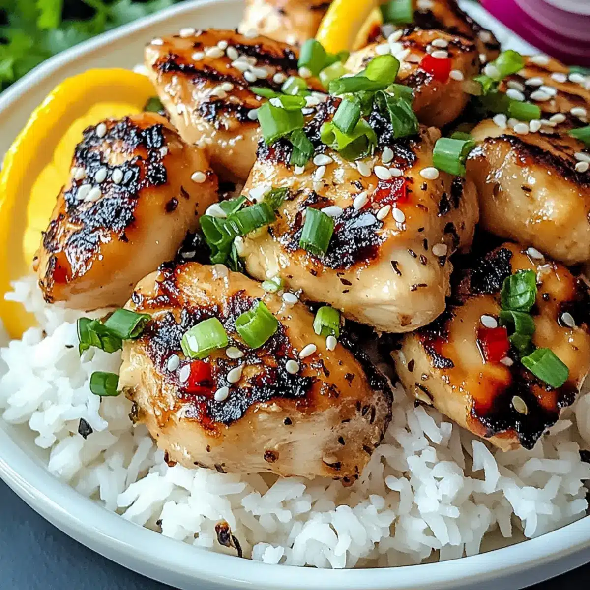 - Serve: Slice the grilled chicken and plate it alongside coconut rice. Garnish with chopped green onions and sesame seeds.