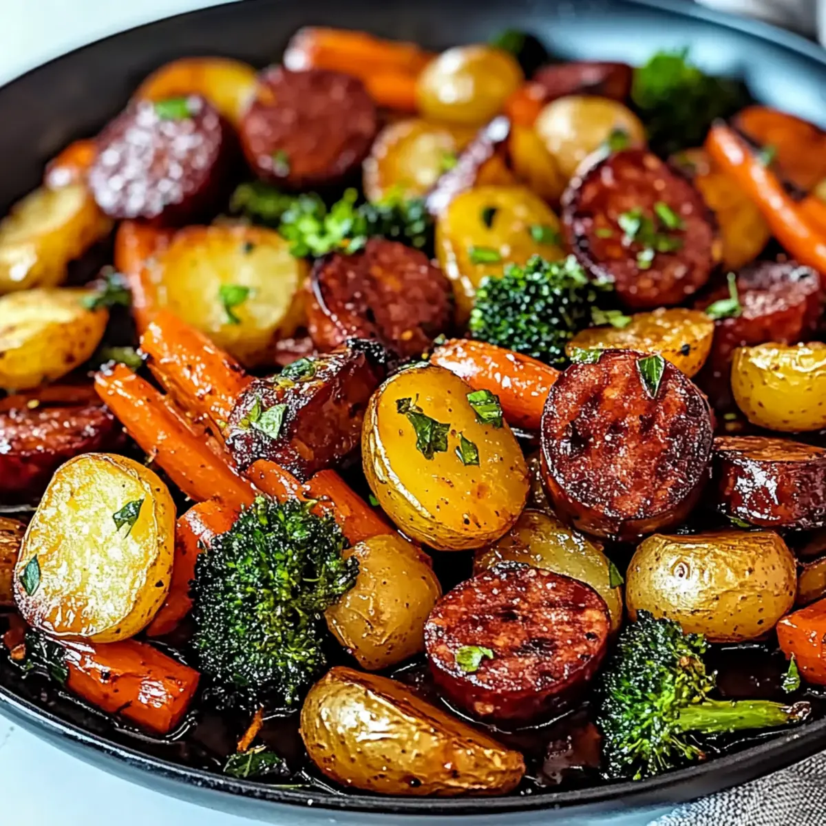 As I tossed the vibrant vegetables with honey and garlic, a wave of nostalgia washed over me, reminiscent of cozy family dinners. This One-Pan Honey Garlic Kielbasa & Veggies is my go-to solution for hectic weeknights, where the aroma of caramelized kielbasa mixed with roasted veggies fills the air, transforming the kitchen into a warm haven. Not only is this dish quick and easy to whip up, but it’s also customizable, making it a favorite for even the pickiest eaters. What’s better? Cleanup is a breeze, allowing more time for laughter and stories around the dinner table. Are you ready to make your kitchen smell divine while enjoying a meal that everyone will love?