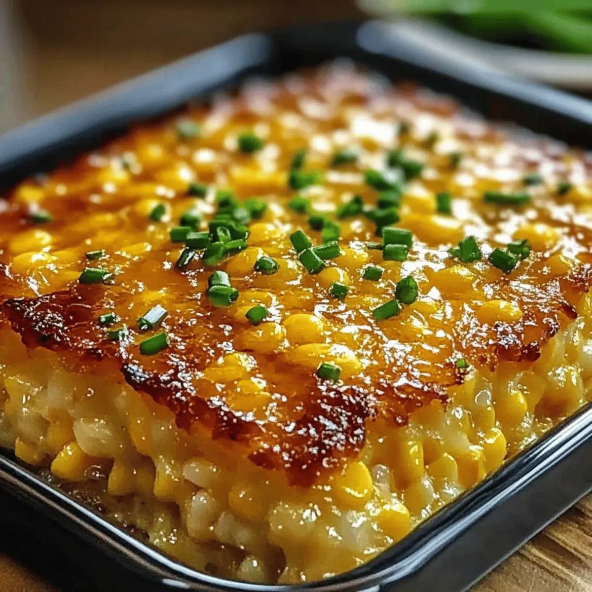 Once baked, remove your Honey-Glazed Corn Casserole from the oven and let it cool for a brief moment. This not only enhances the flavors but makes it easier to cut and serve. Before serving, sprinkle with chopped chives or parsley for a burst of freshness and color—an irresistible touch!