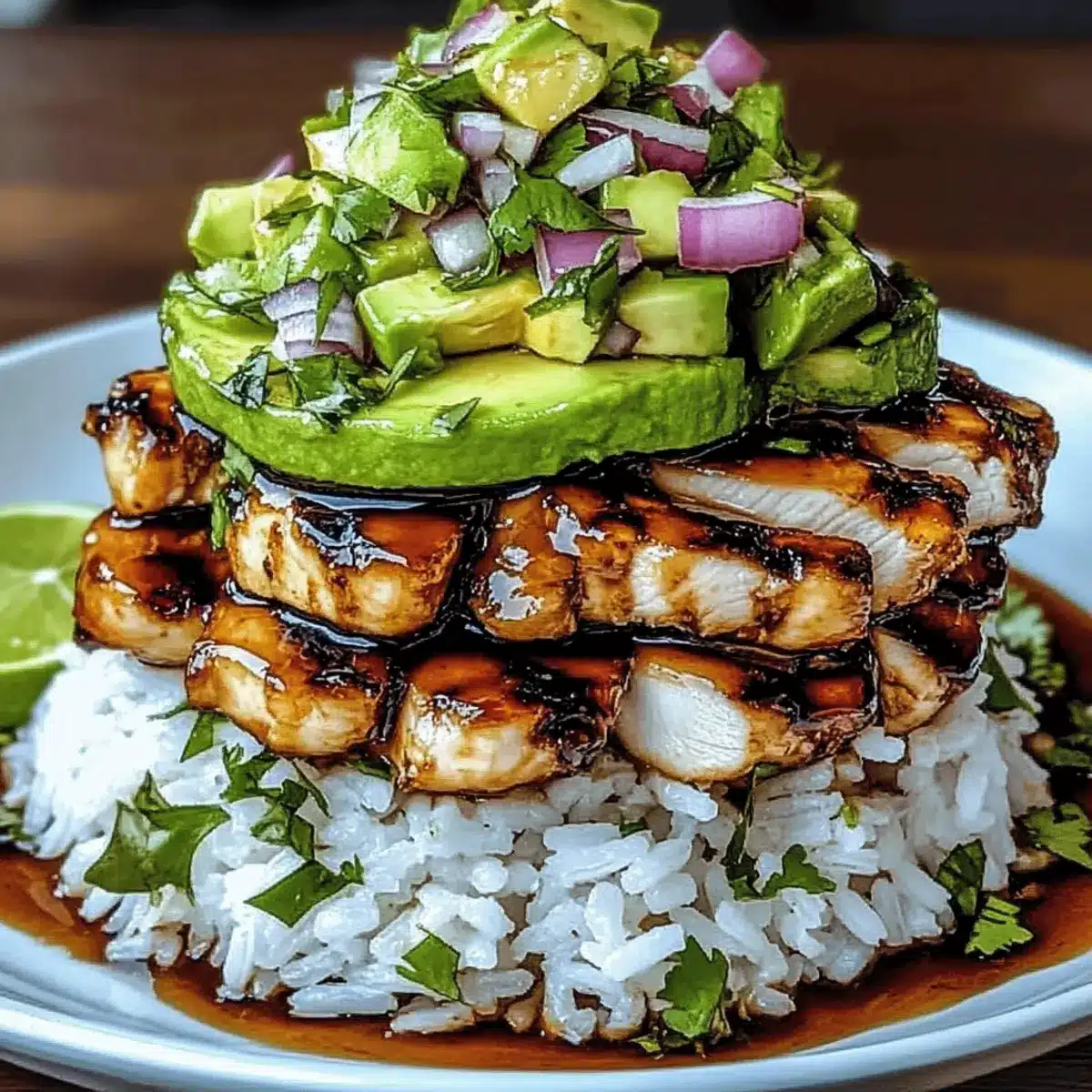 Honey Lime Chicken & Avocado Rice Stack