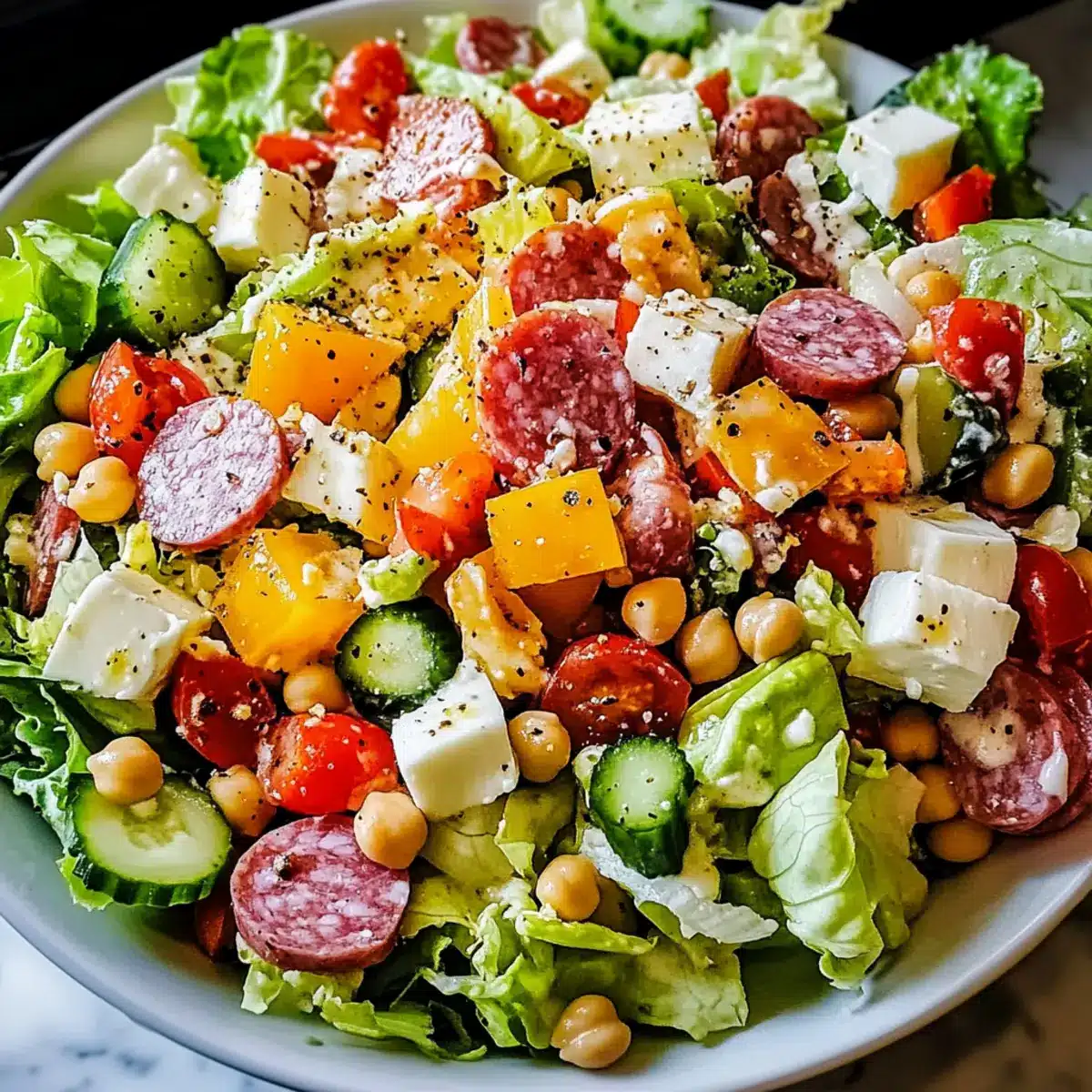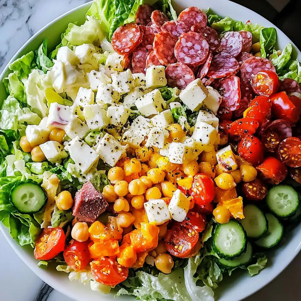 Freshness, this Italian Chopped Salad is a celebration of seasonal produce that brings the essence of summer to your table. Customizable, feel free to mix and match vegetables, proteins, and cheeses to suit any palate, making it a perfect fit for gatherings. Nutrient-rich, loaded with vitamins and lean proteins, this salad combines indulgence with health benefits. Quick preparation, it’s easy to whip up in under 30 minutes, making it a go-to option for busy weeknights or spontaneous picnics. Crowd-pleaser, with its vibrant colors and robust flavors, everyone will be coming back for seconds! Looking for more delicious salad ideas? Check out our Chicken Salad Discover or Southwest Salmon Salad for inspiration!