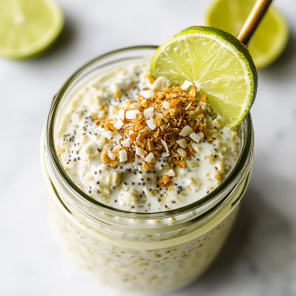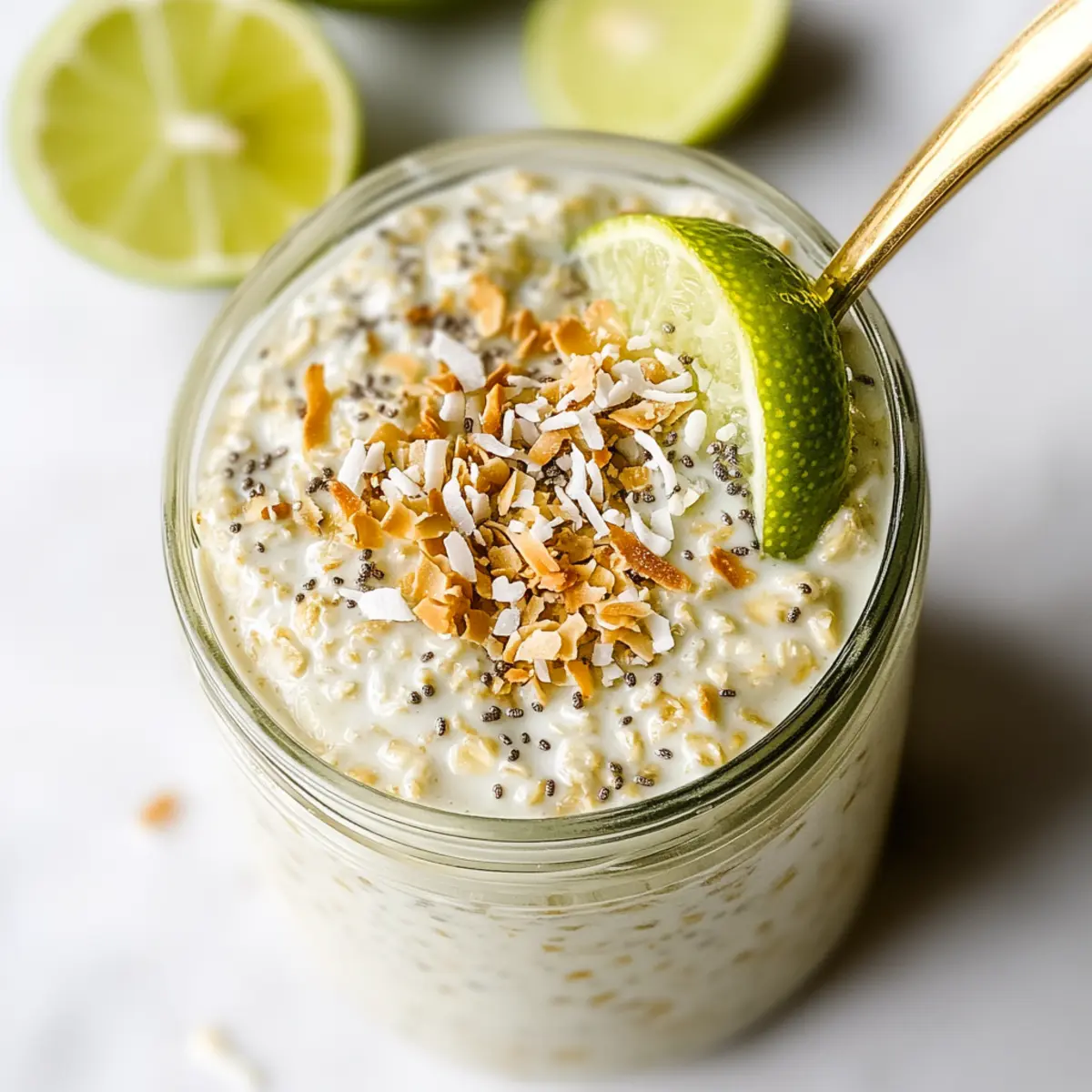 Convenience: With just 10 minutes of prep, these Key Lime & Coconut Overnight Oats are the ultimate time-saver for busy mornings. Nutritious: Packed with high protein, these oats feature creamy Greek yogurt and fiber-rich rolled oats, making them a wholesome choice. Tropical Flavor: The zesty lime and luscious coconut create a refreshing breakfast that transports you to a sunny paradise. Versatility: Customize your oats with various toppings like fresh fruits or nut butter, ensuring there’s always something new to enjoy! For more easy breakfast ideas, check out our Overnight Croissant French recipe for a delightful twist!