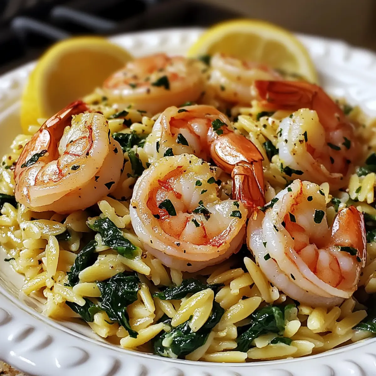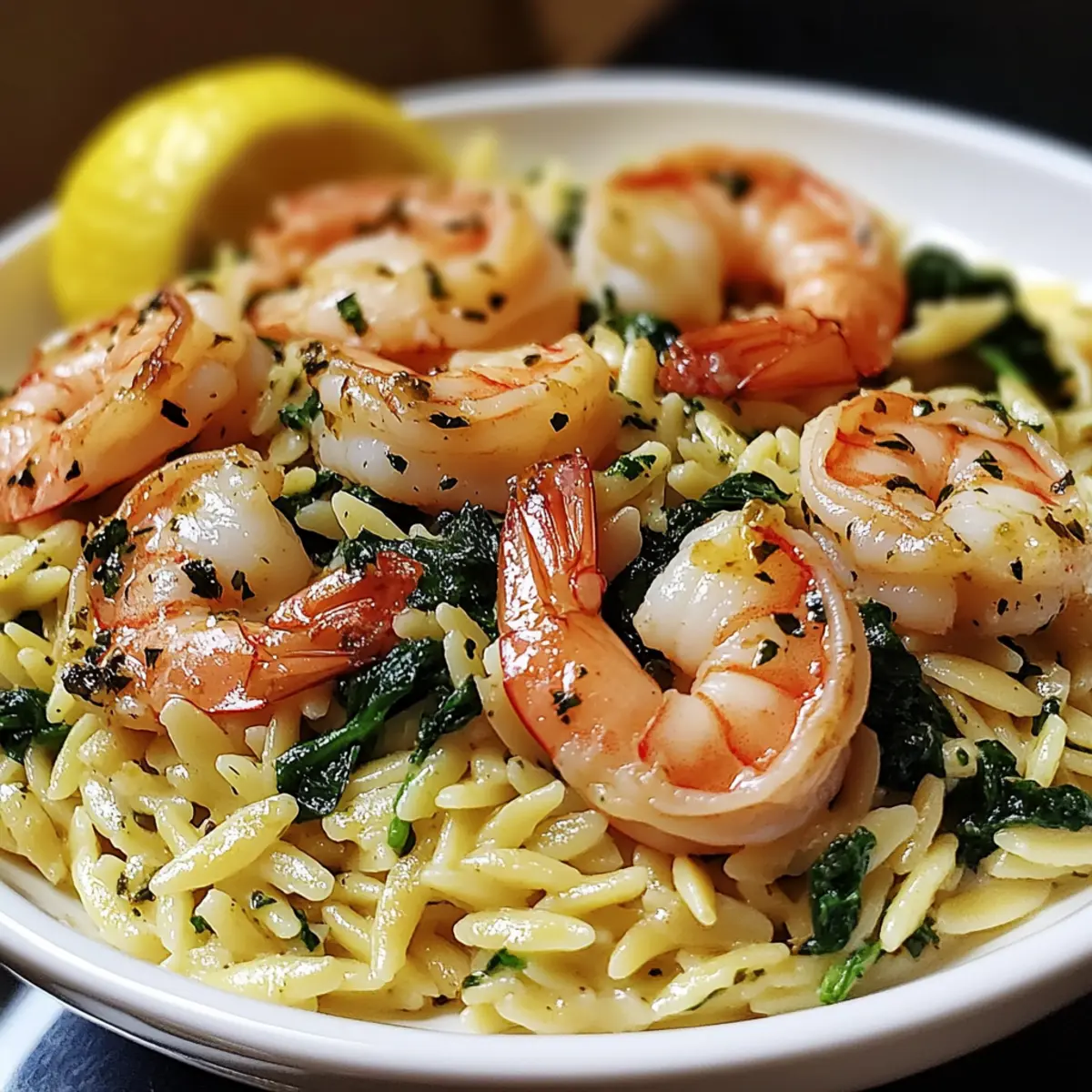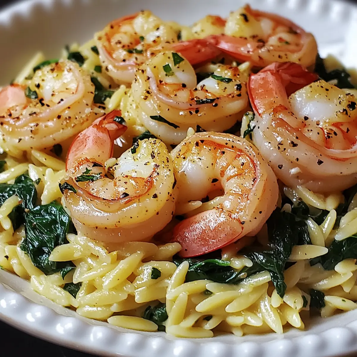 A quick and elegant Lemon Garlic Shrimp with Spinach Orzo dish that elevates your dinner experience with rich flavors in just 25 minutes.