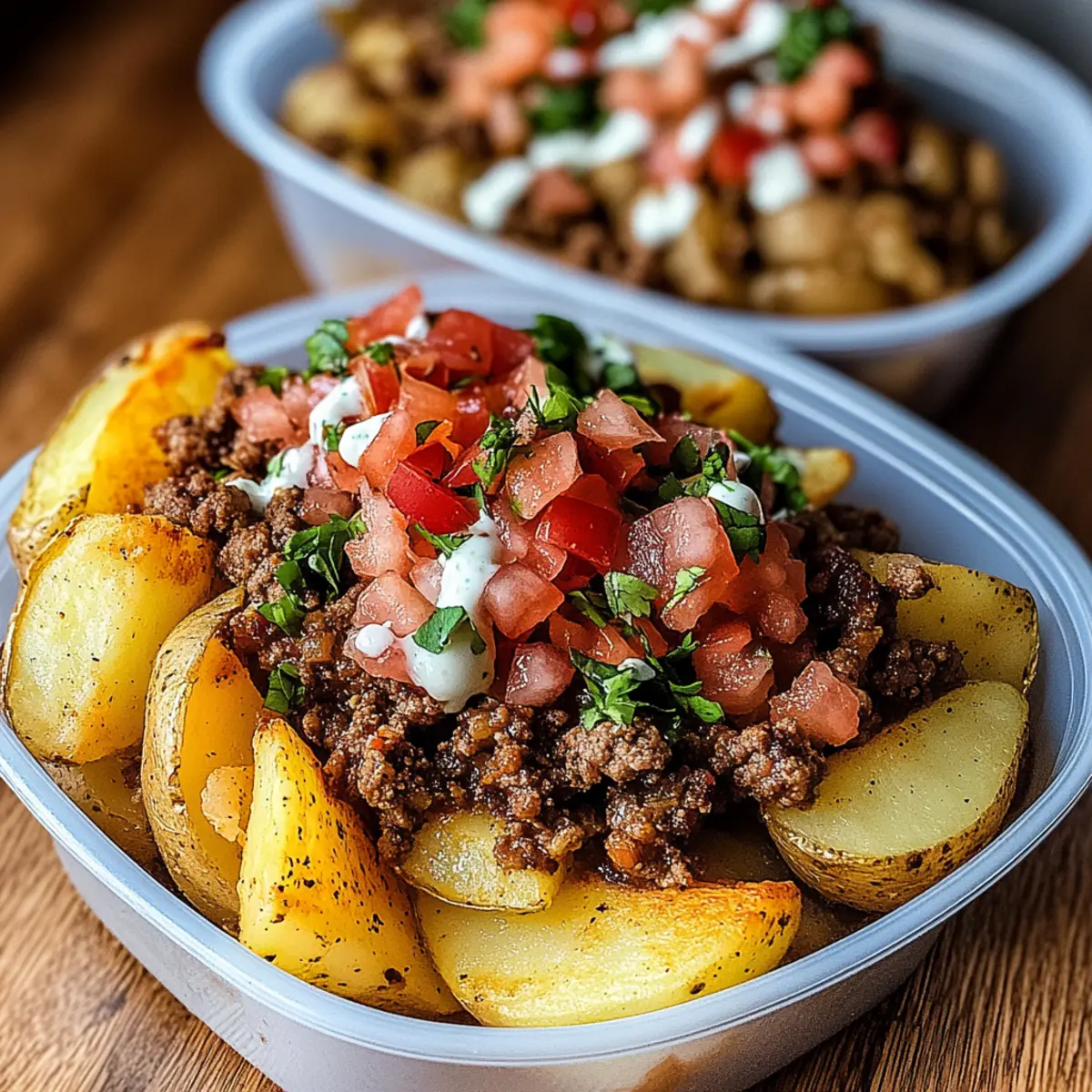 These Loaded Potato Taco Bowls are perfect for meal prep enthusiasts! You can prepare the taco meat and pico de gallo up to 3 days in advance, storing them separately in airtight containers in the refrigerator to maintain freshness. For the potatoes, roast them the day before and keep them crispy by storing them uncovered in the fridge. When you’re ready to serve, simply reheat the potatoes in the oven or an air fryer to restore their crunch—then layer everything in bowls, finishing with the sriracha mayo. This way, you’ll enjoy a comforting dinner in no time, with restaurant-quality results and minimal effort!