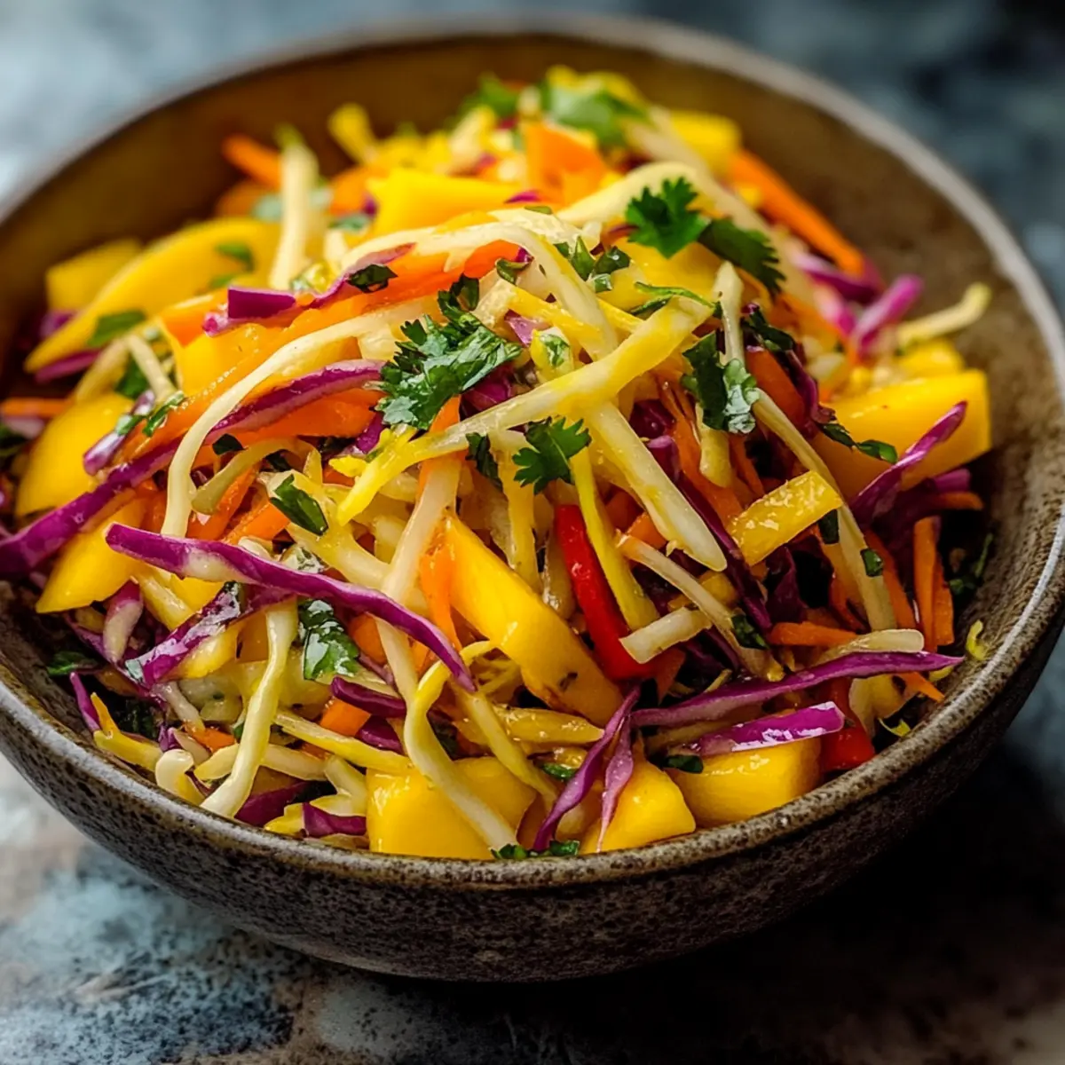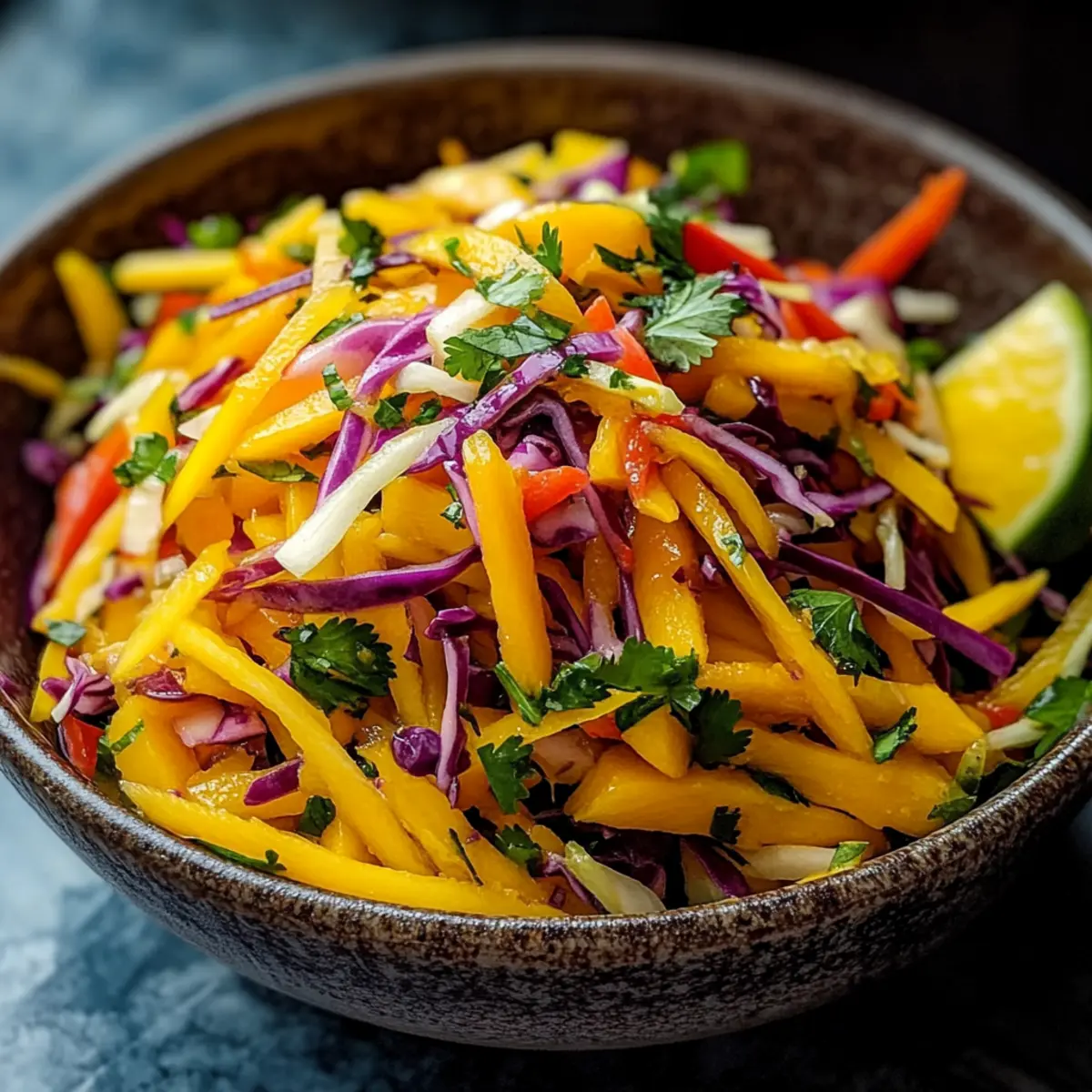 Bright, Vibrant Colors: This Mango Slaw is a feast for the eyes, featuring a stunning array of colors that instantly elevate any meal.