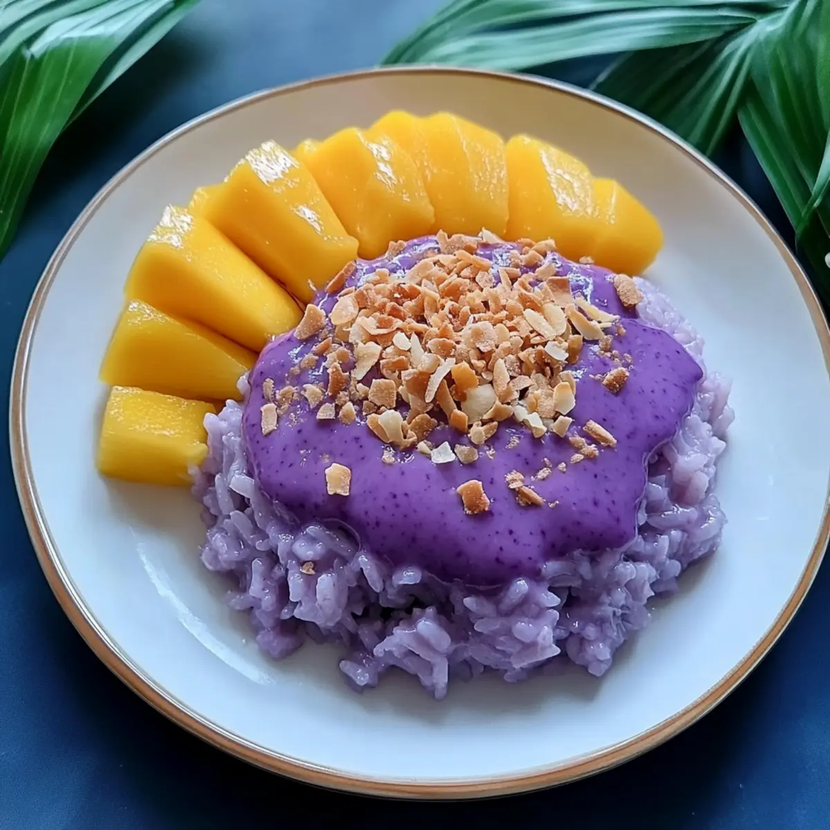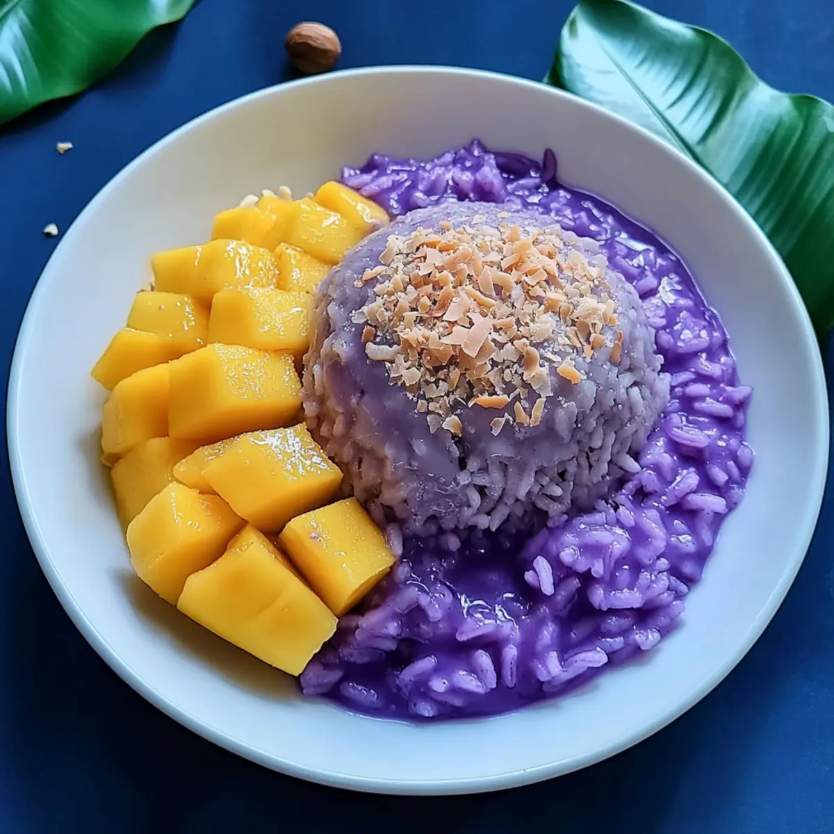 Vibrant Presentation: The stunning purple hue of ube alongside bright mango slices creates a feast for the eyes.