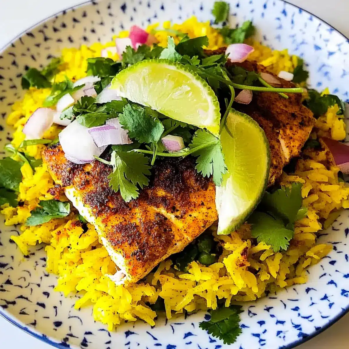 Dive into creating this flavorful Masala Baked Fish with Turmeric Rice you won’t forget!