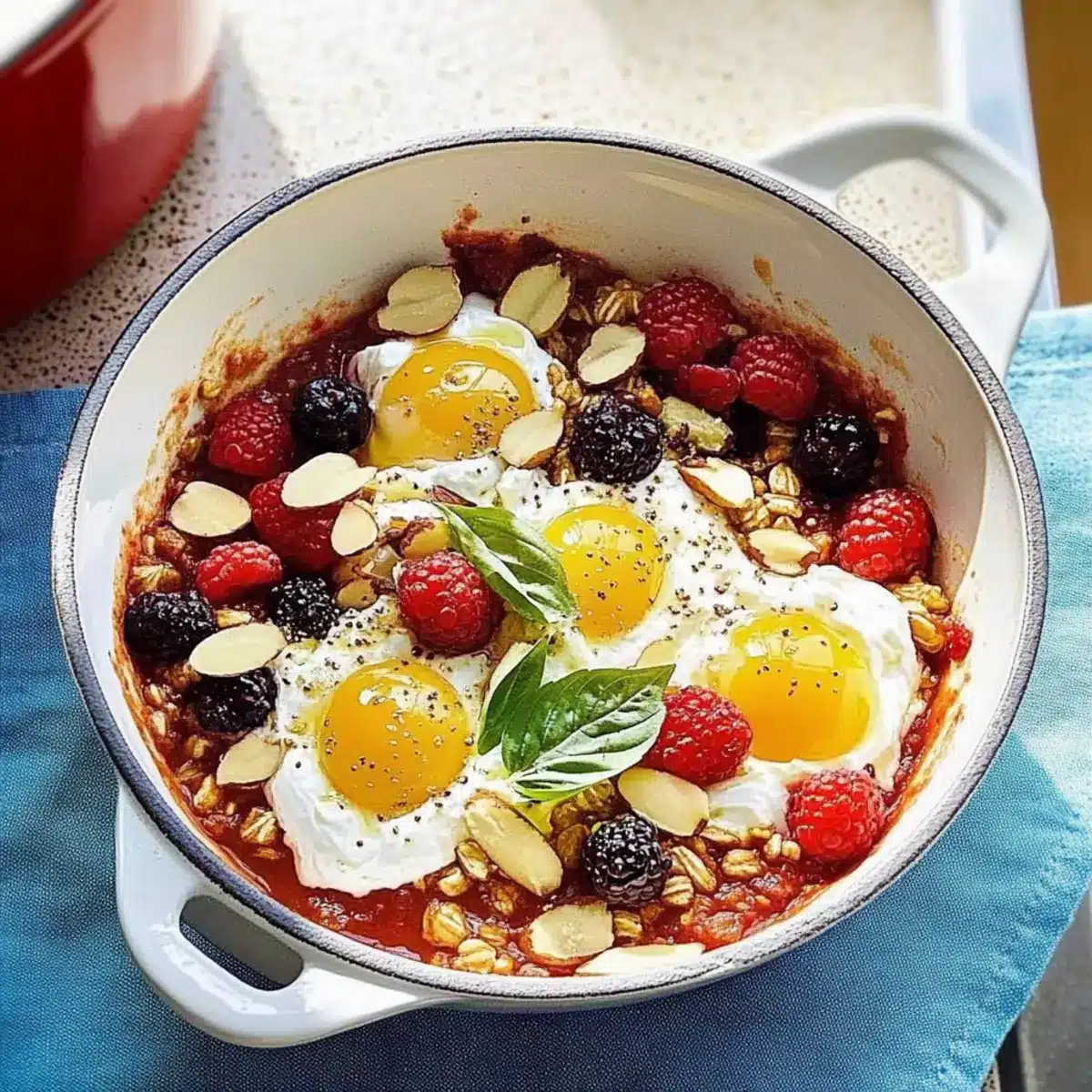 Absolutely! You can easily create a plant-based version of this breakfast by substituting Greek yogurt with dairy-free yogurt and using tofu instead of eggs. Simply sauté scrambled tofu with your favorite spices, and follow all other steps as indicated. You’ll still enjoy a deliciously nourishing breakfast that resonates with Mediterranean flavors!