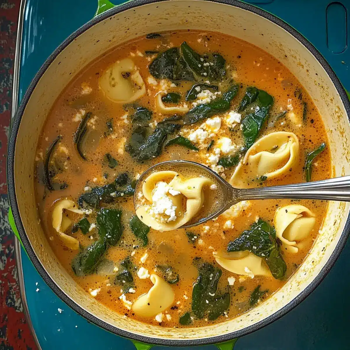 Hearty Mediterranean Tortellini Soup with Spinach & Feta Delight