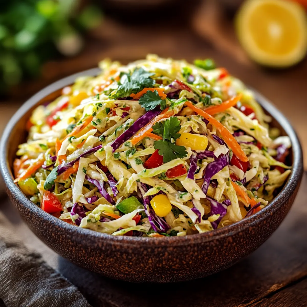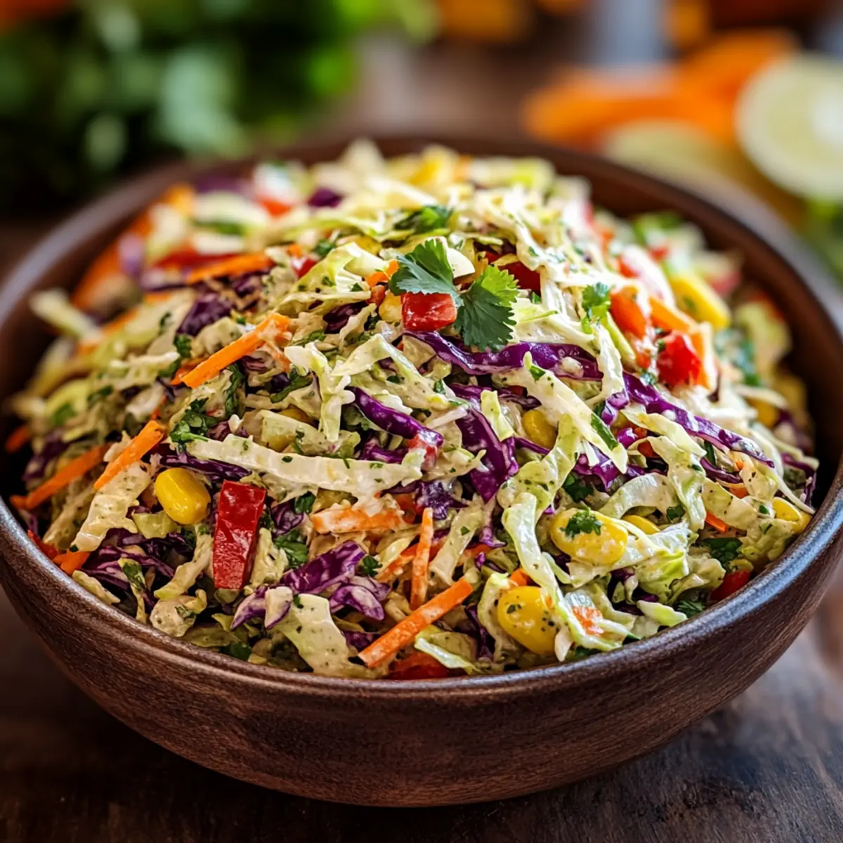 Fresh Ingredients: Using crisp vegetables like cabbage, carrots, and bell peppers ensures every bite is full of crunch and flavor, setting it apart from typical slaws.
