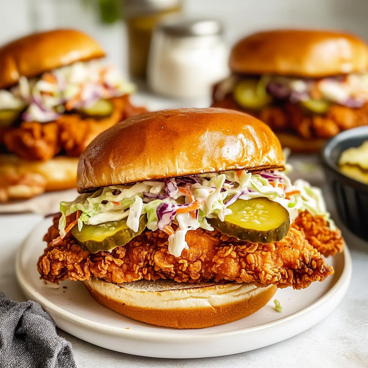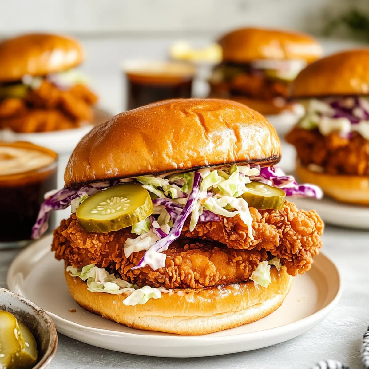 • Creamy Coleslaw: Offers a refreshing crunch that balances the sandwich’s spicy kick, making each bite a delightful contrast.