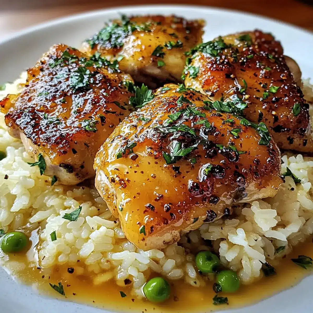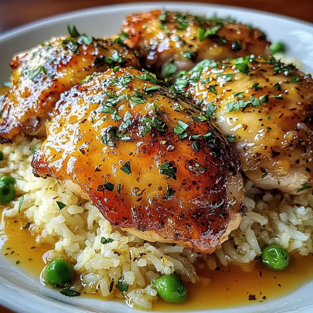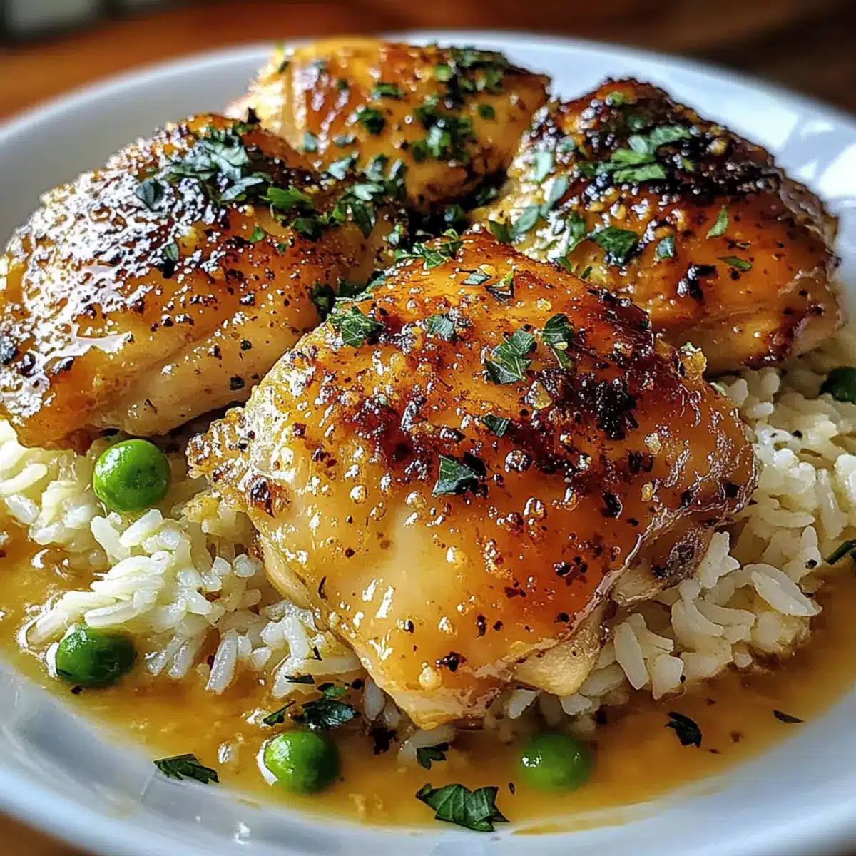 One-Pan Honey Butter Garlic Chicken & Rice is a cozy weeknight meal that combines juicy chicken thighs with a sweet and savory honey butter glaze, served over fluffy rice.