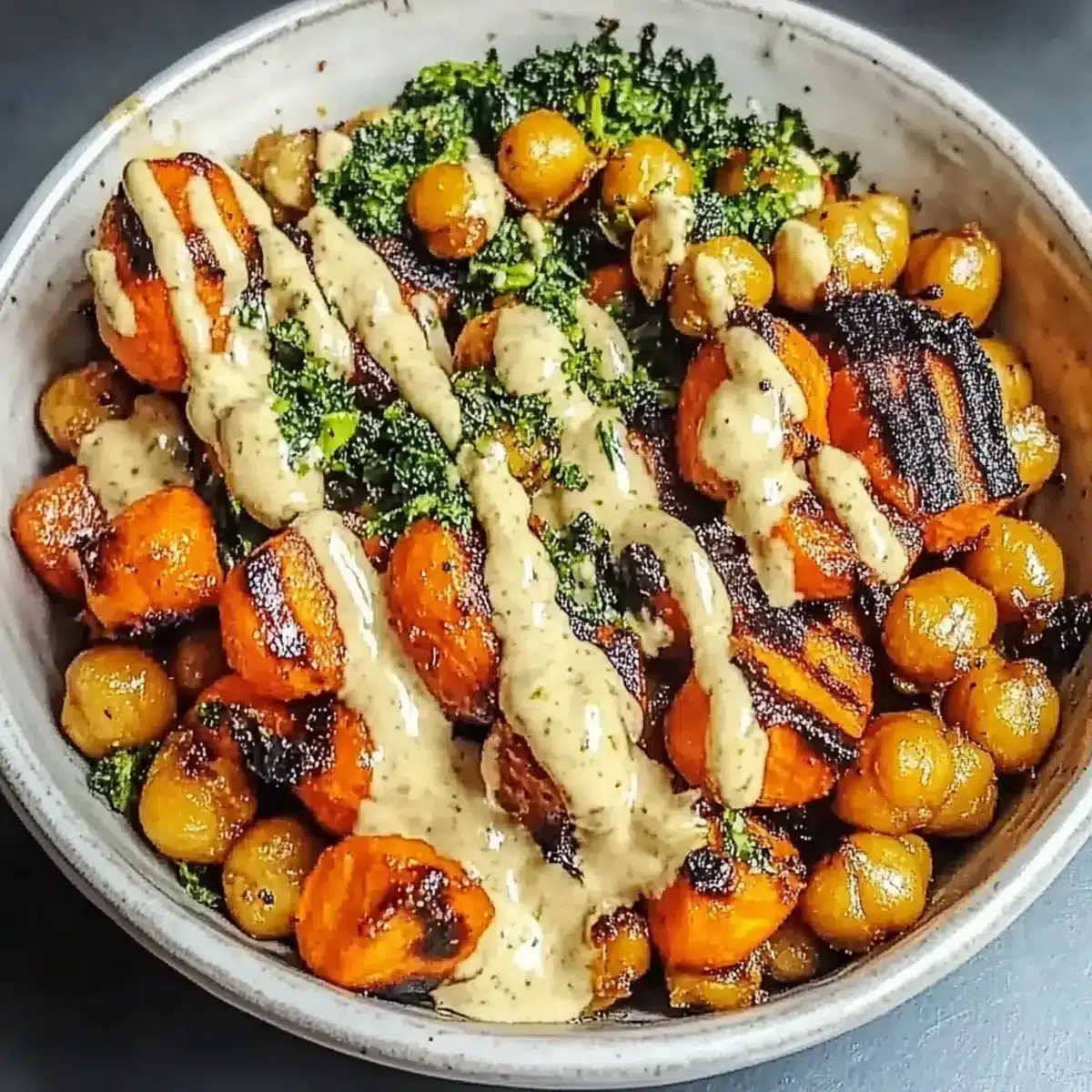 Creamy Alternative: Swap tahini for a creamy yogurt dressing to add a tangy twist to your bowl. Whipping up this dressing offers a wonderful balance to the sweet roasted veggies.