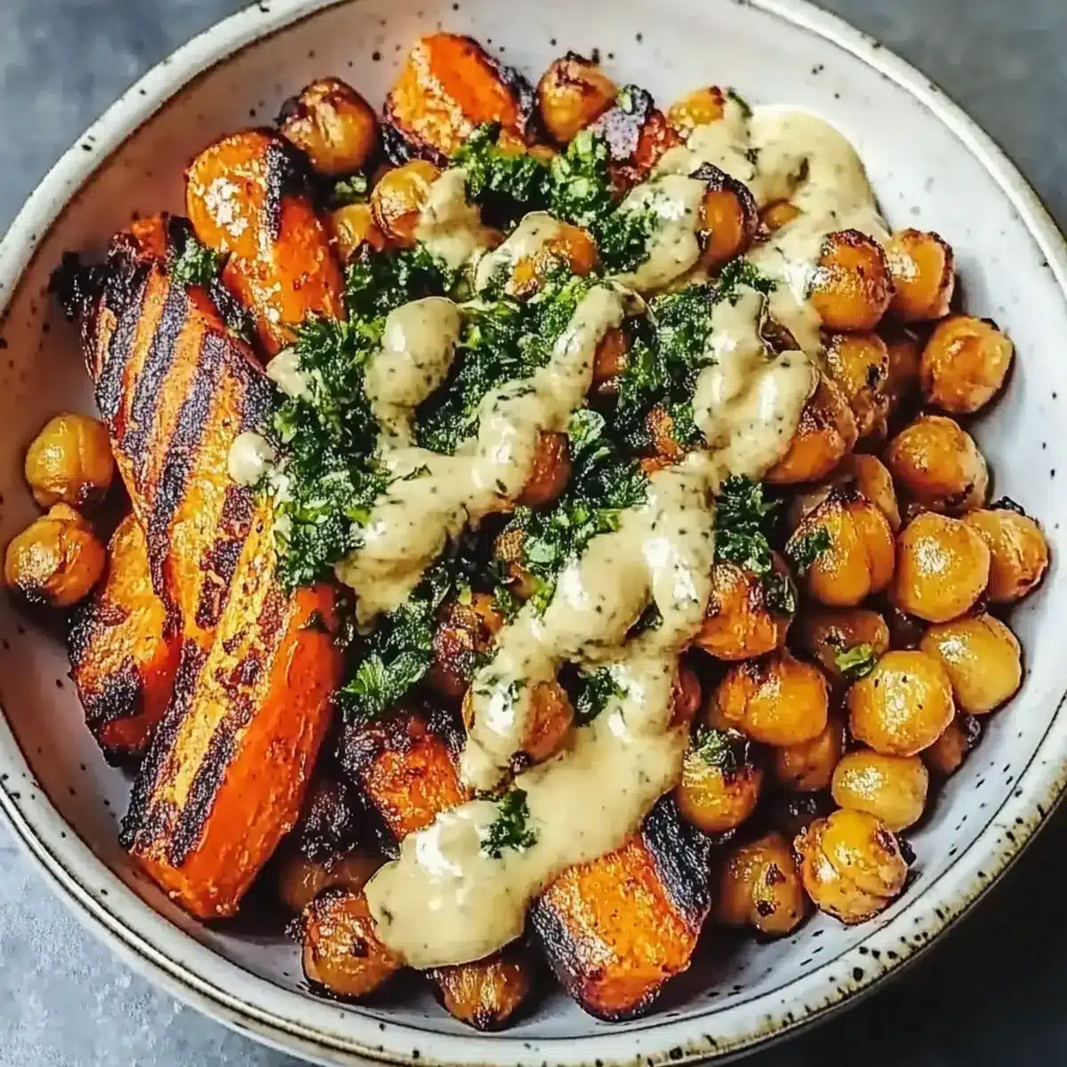 - Once roasted, let the carrots and chickpeas cool slightly, then layer them in bowls and drizzle with tahini dressing before serving.