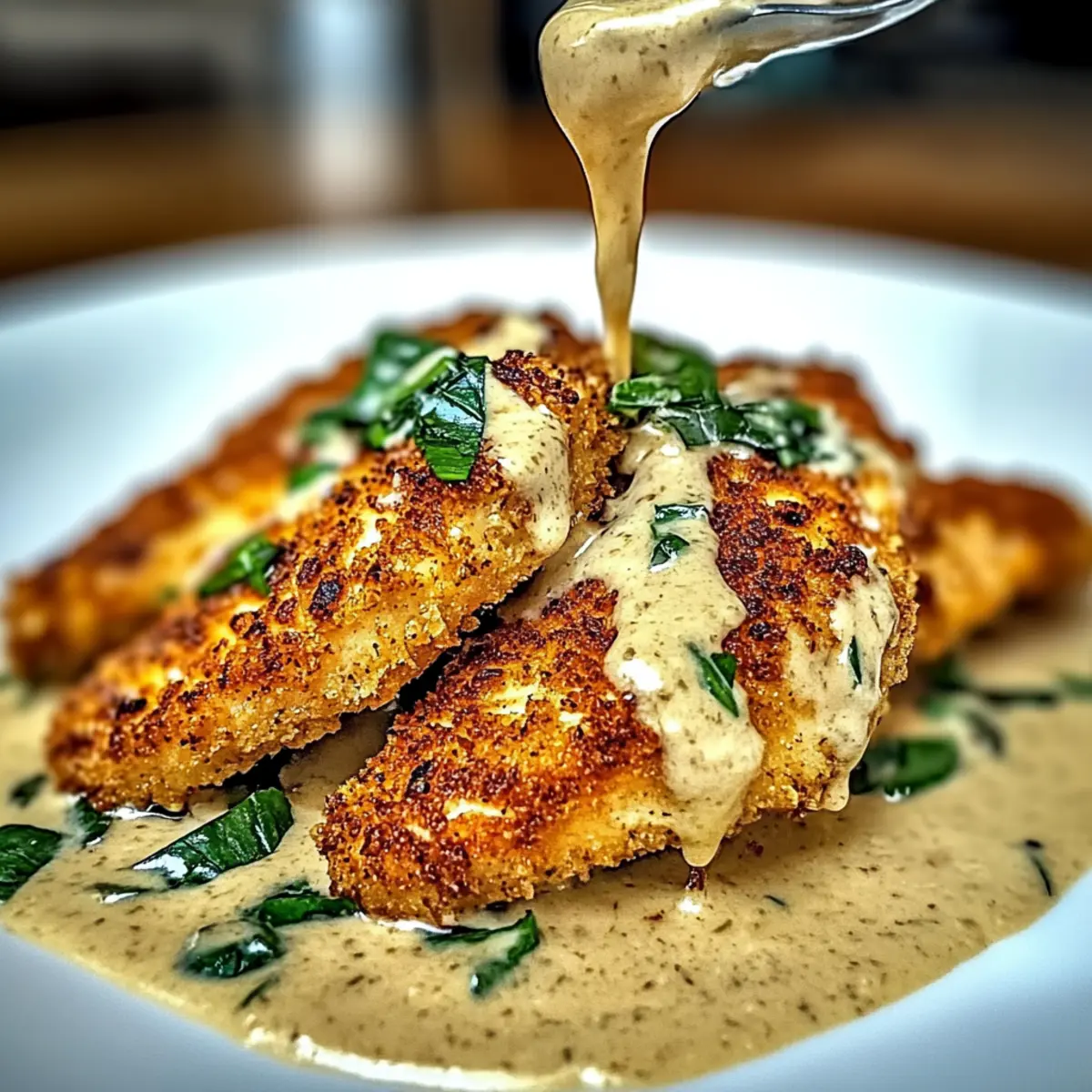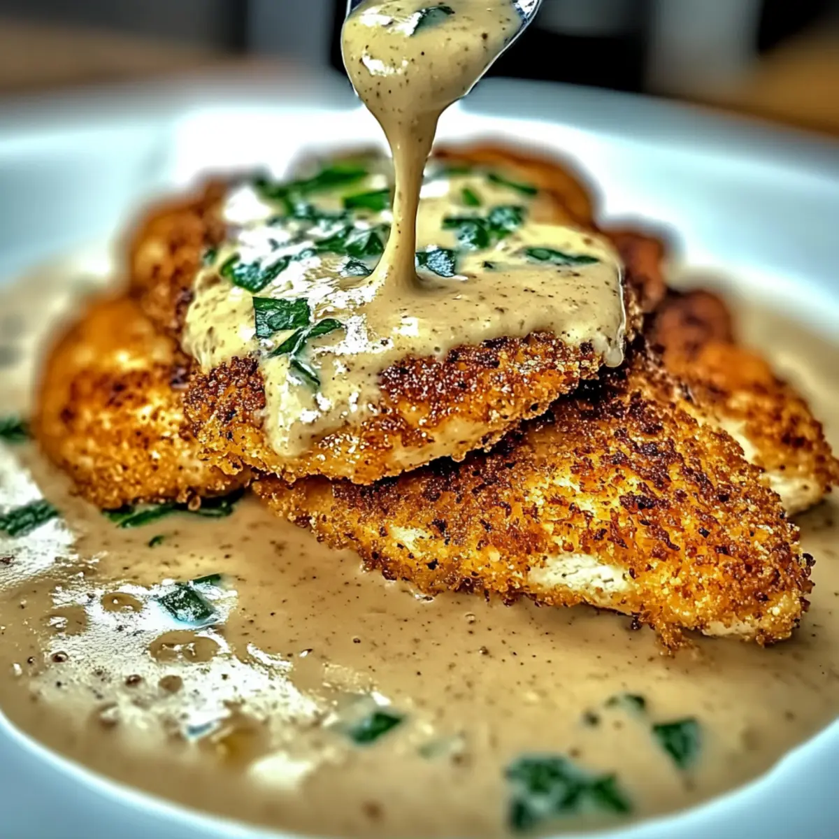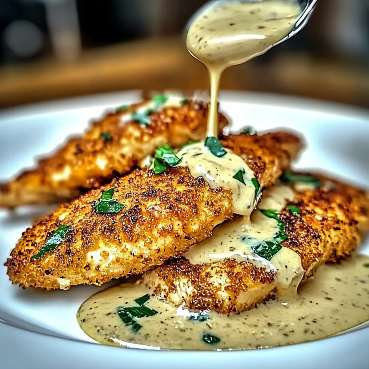 Crispy Parmesan Crusted Chicken with Creamy Garlic Sauce Delight