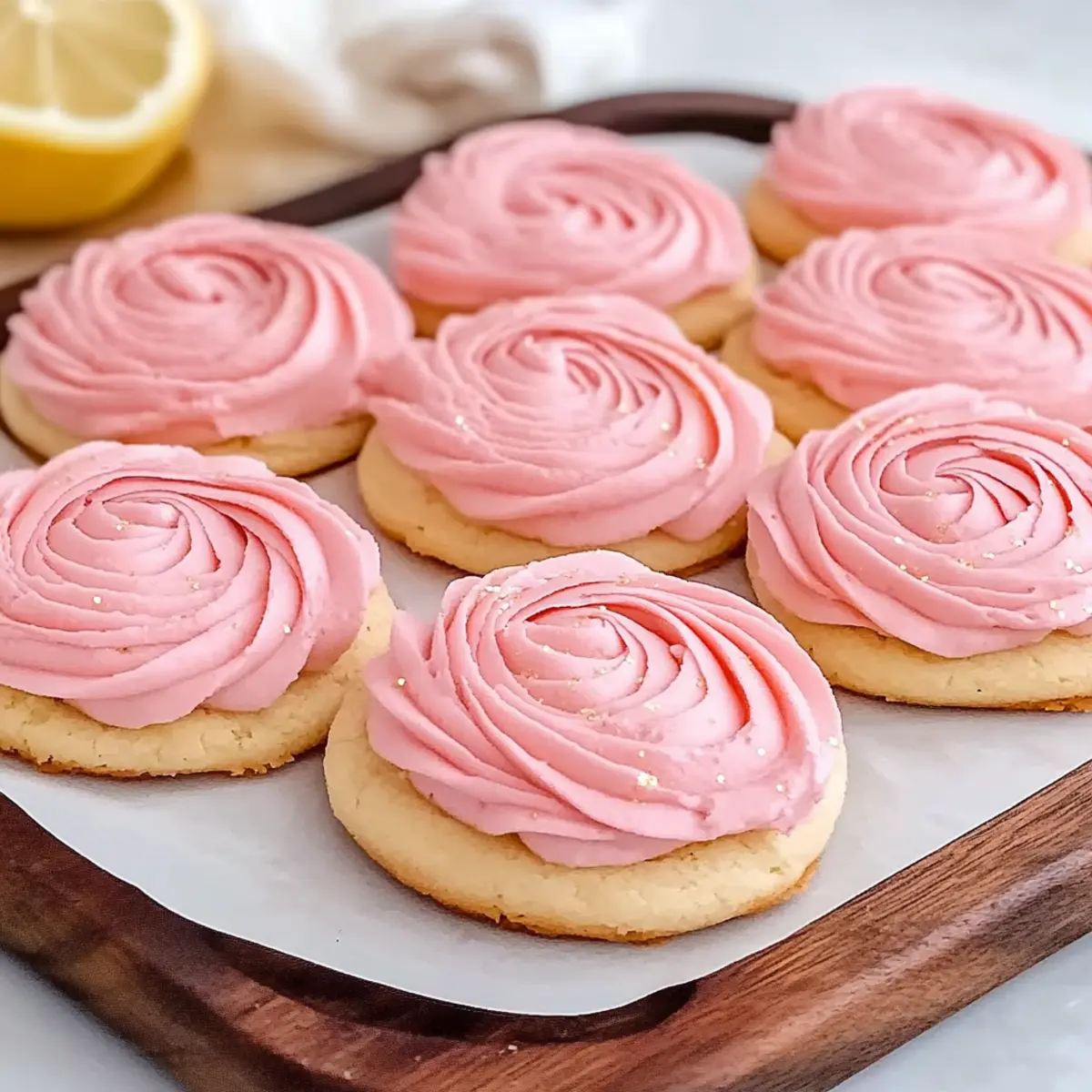 Once the cookies have completely cooled, it’s time to frost them! Use a piping bag fitted with a large star tip to pipe the creamy frosting onto each cookie in a spiral motion. This not only adds flavor but also creates an eye-catching finish that makes your Pink Lemonade Cookies truly stand out.