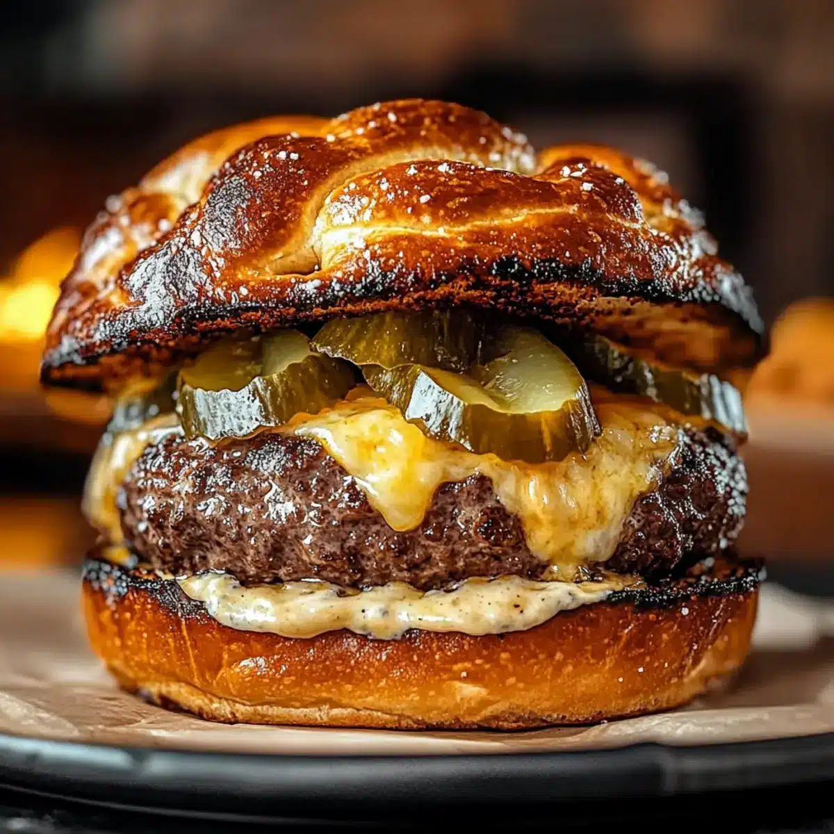 Indulge in a Pretzel Bun Beer Cheese Burger Bliss