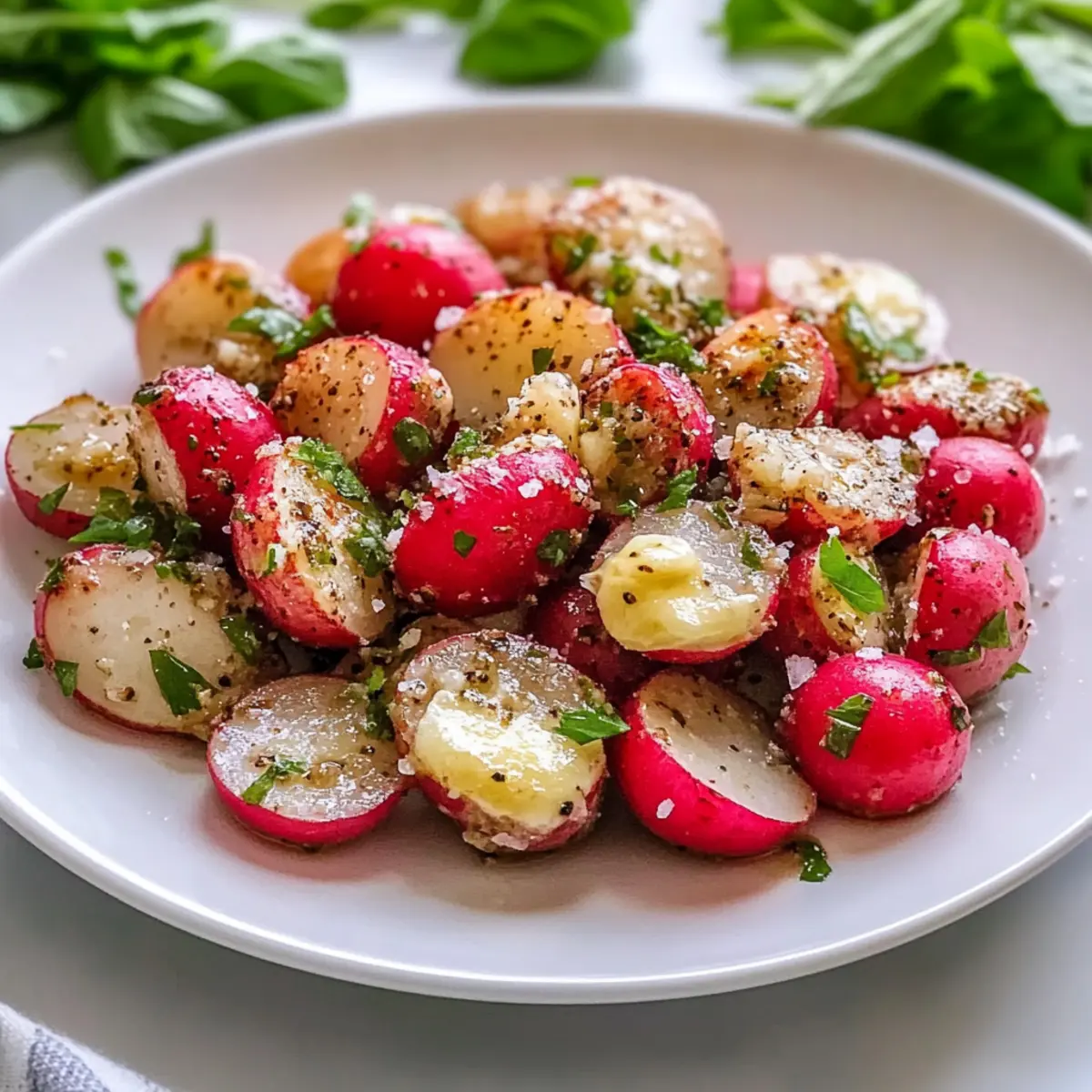 Experiment with flavored salts like garlic or truffle salt instead of regular salt. These alternatives can add a delightful, sophisticated touch that enhances the overall flavor of your radishes. -
