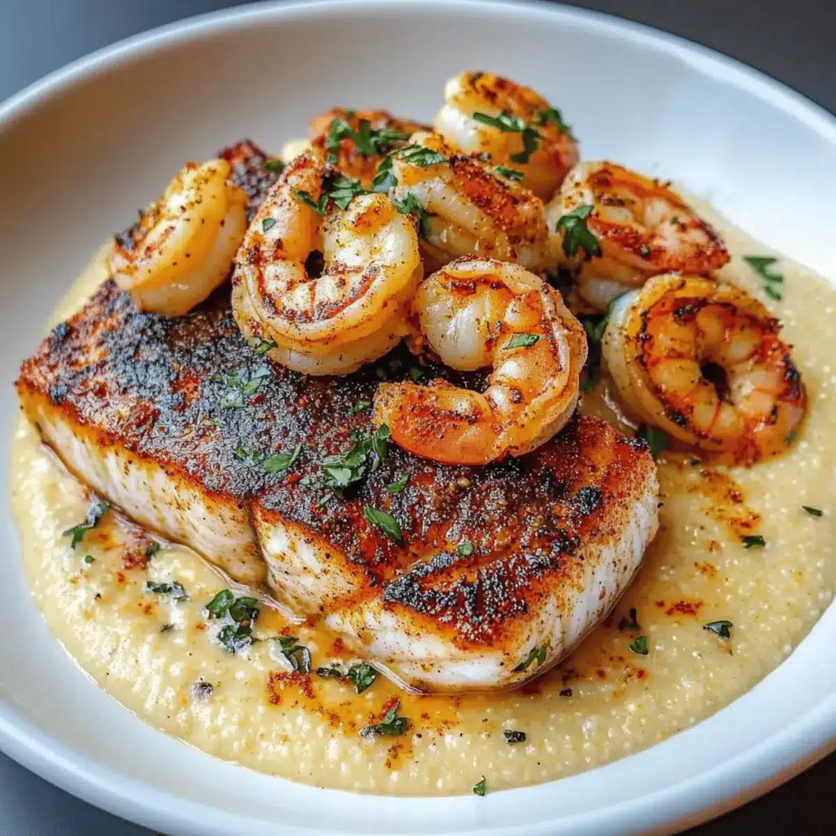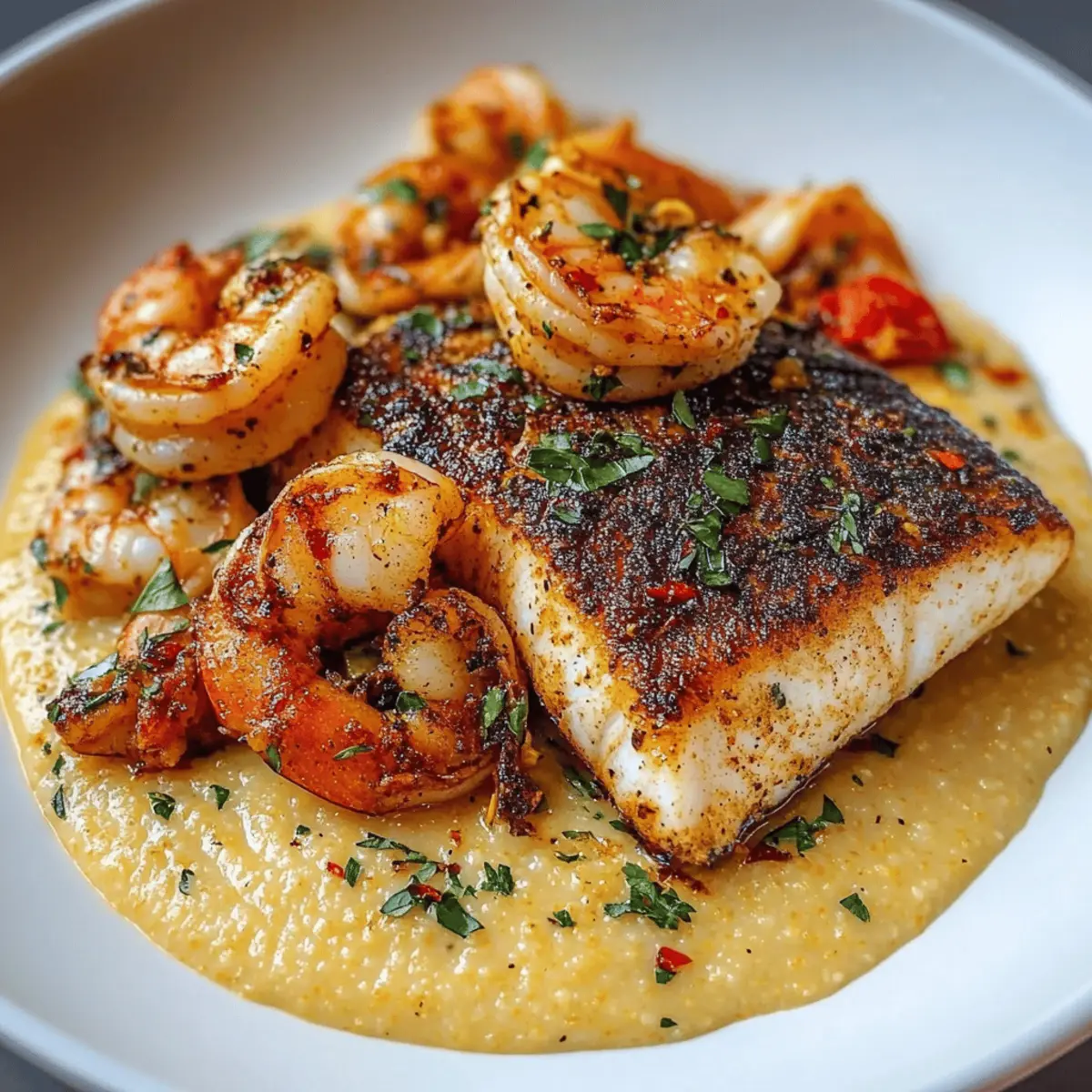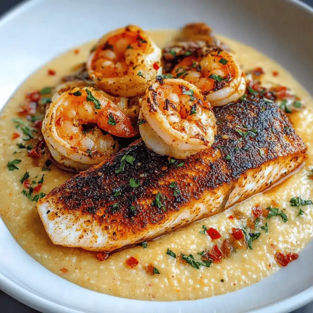- To serve, spoon a generous amount of creamy grits onto warm plates. Top each serving with the crispy snapper and sautéed shrimp, then drizzle the rich Cajun cream sauce over everything.