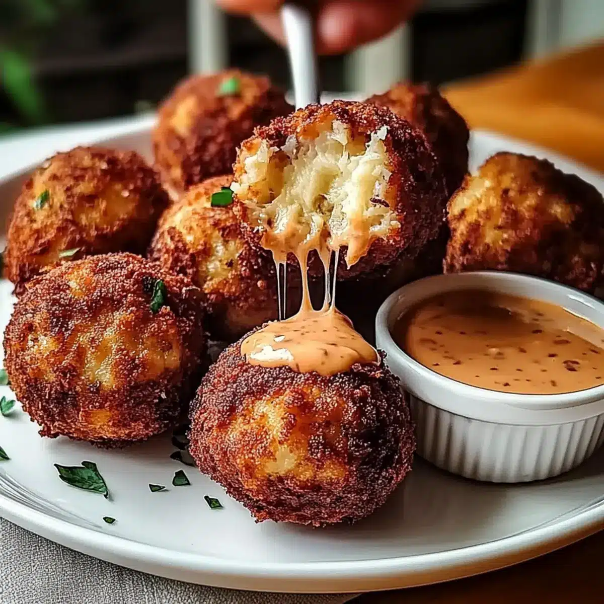 Crispy Reuben Balls with Spicy Thousand Island Bliss