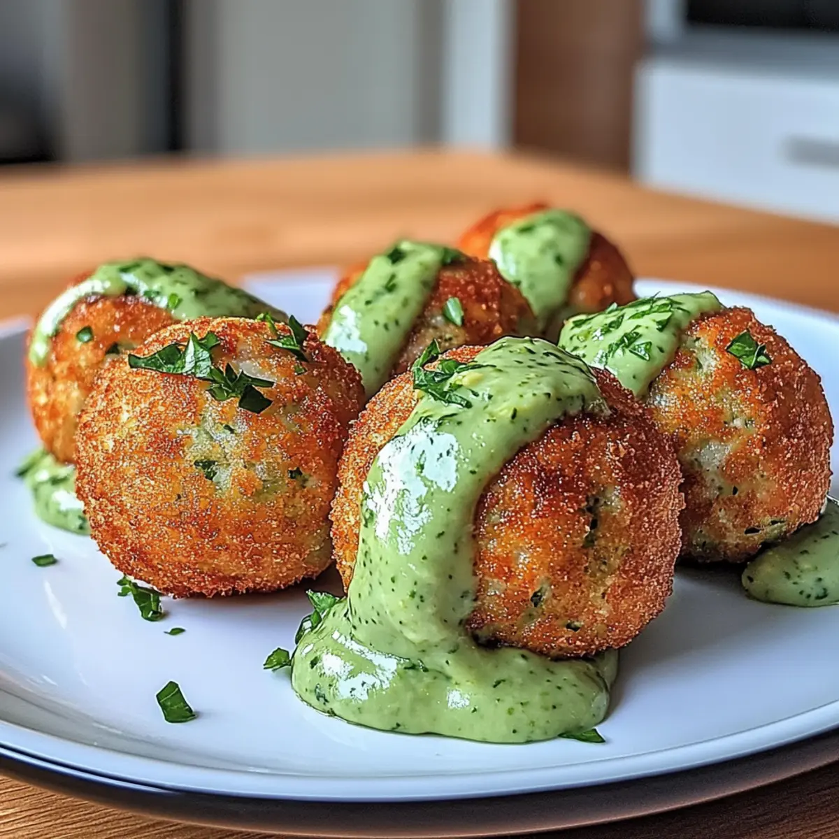 Savory Salmon Balls with Creamy Avocado Sauce Delight