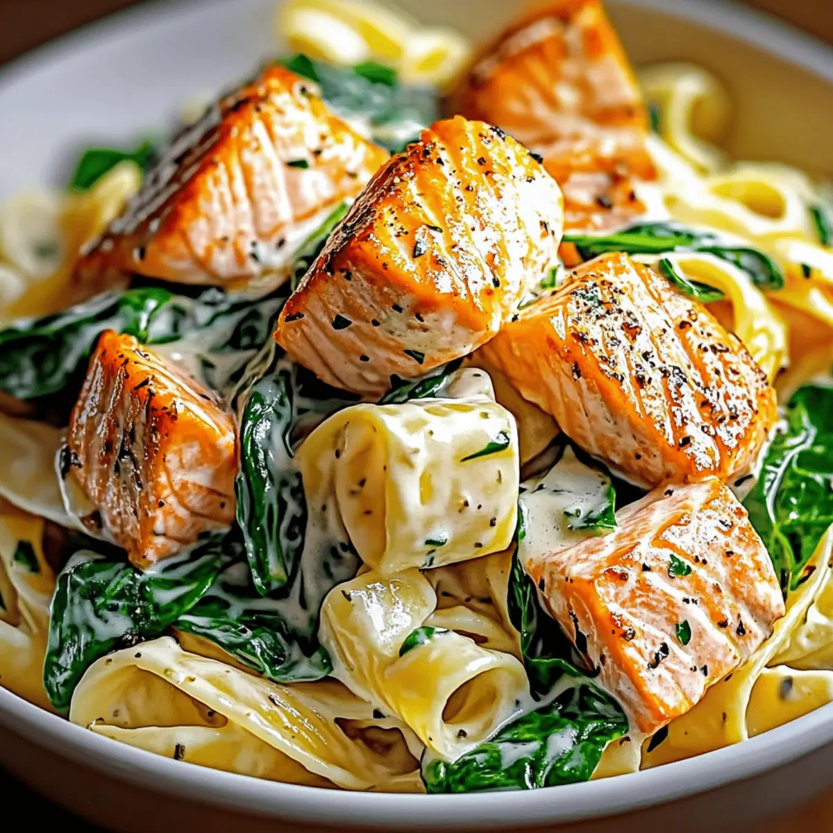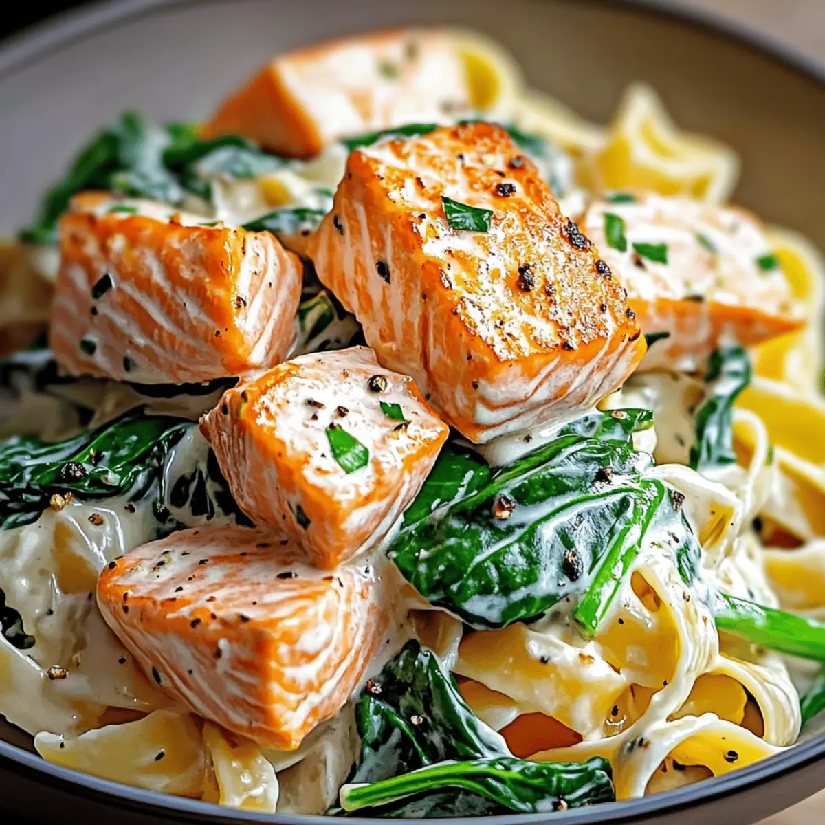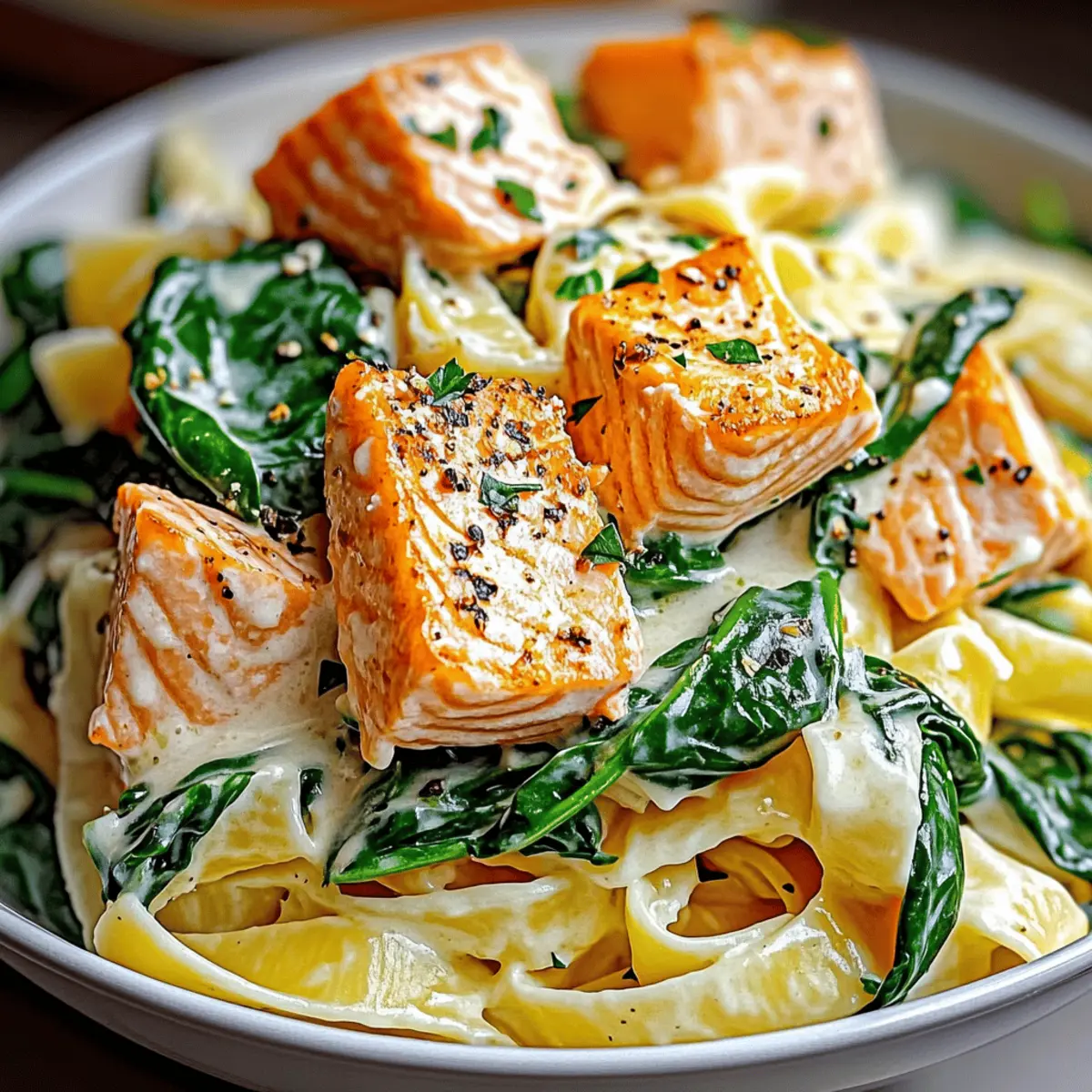 Absolutely! To make a dairy-free version, substitute the heavy cream with coconut milk or a dairy-free cream alternative. For the cheese, you can use nutritional yeast for that cheesy flavor without the dairy. Additionally, skip the Parmesan and enjoy the freshness of the salmon and spinach without compromising on taste!