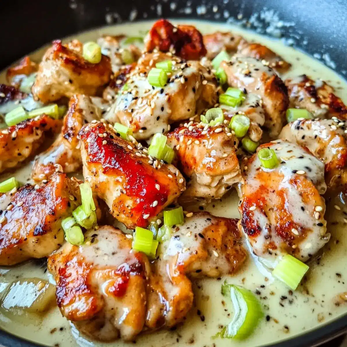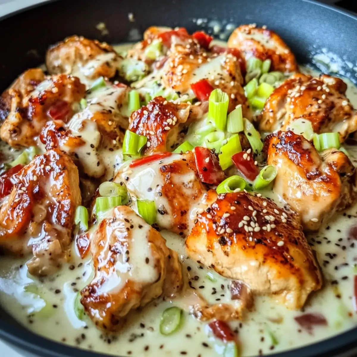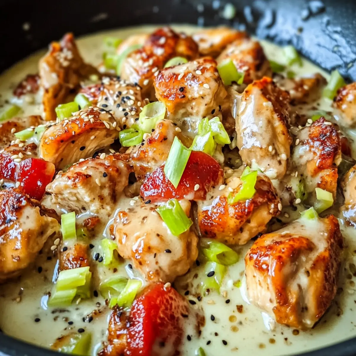 - Garnish with sesame seeds and chopped green onions before serving.